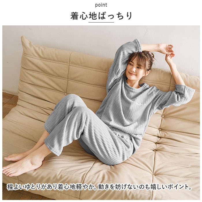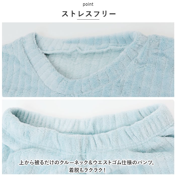 | 商品説明 | リラックスタイムにぴったり!軽い着心地のルームウェアが登場!【柔らか素材】ボア素材を使用しているので、ふわっとした柔らかな肌触り♪【着心地ばっちり】程よいゆとりがあり着心地軽やか。動きを妨げないのも嬉しいポイント。【ストレスフリー】上から被るだけのクルーネック&ウエストゴム仕様のパンツ。着脱もラクラク!【シンプルなデザイン】年代問わず着用しやすい、ベーシックなデザイン。胸元やパンツに入ったロゴがさりげないアクセントに。【選べるカラー】優しい風合いのカラーから、お好みに合わせてチョイス☆洗い替え用に色違いで揃えても◎ |