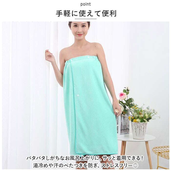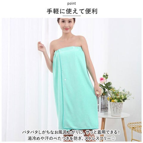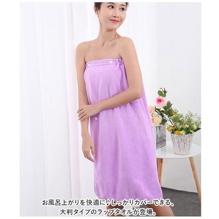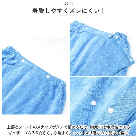 | 商品説明 | お風呂上がりを快適に♪しっかりカバーできる、大判タイプのラップタオルが登場。【手軽に使えて便利】バタバタしがちなお風呂上がりに、サッと着用できる!湯冷めや汗のべたつきを防ぎ、ストレスフリー◎【着脱しやすくズレにくい!】上部とフロントのスナップボタンで留めるだけ。胸元には伸縮性のあるギャザーゴム入りだから、心地よくフィット!ズリ落ちの心配も不要◎【吸水速乾性のあるふんわり素材】柔らかく肌に優しい素材を使用。水気や汗を素早く吸収し、乾きが早いのも嬉しいポイント。【程よいボリューム感】薄すぎず厚すぎない生地感で使い勝手抜群。かさばりにくいので、ジムやプール、温泉などへの持ち運びにもおすすめ。【お気に入りをチョイス】カラフルなカラーバリエーション。家族それぞれの分や洗い替え用に、複数色揃えるのもおすすめ。 |