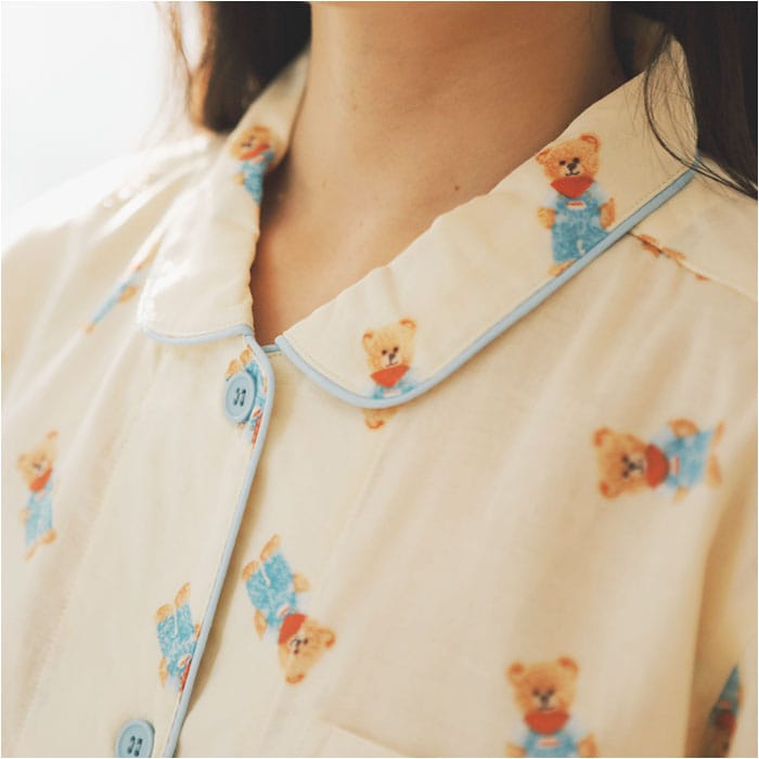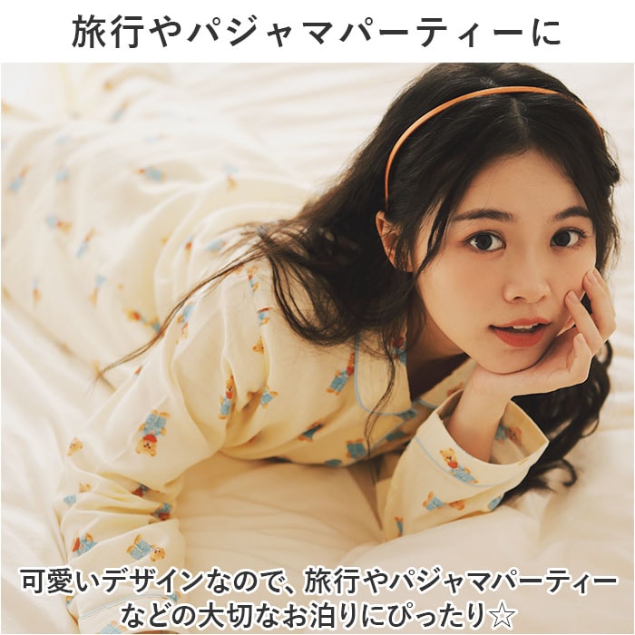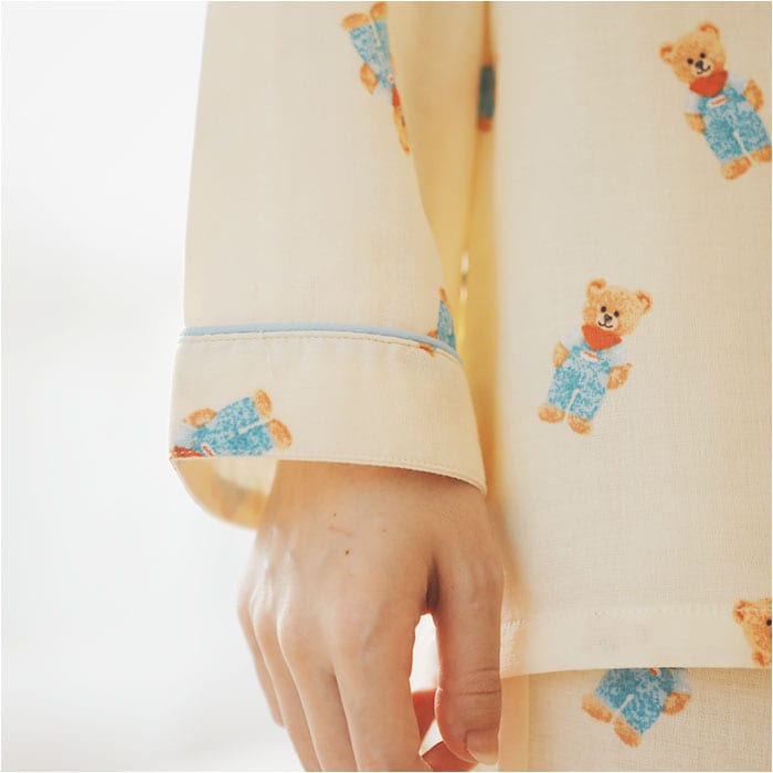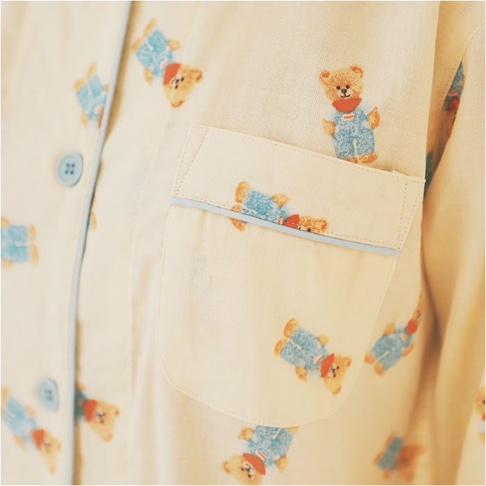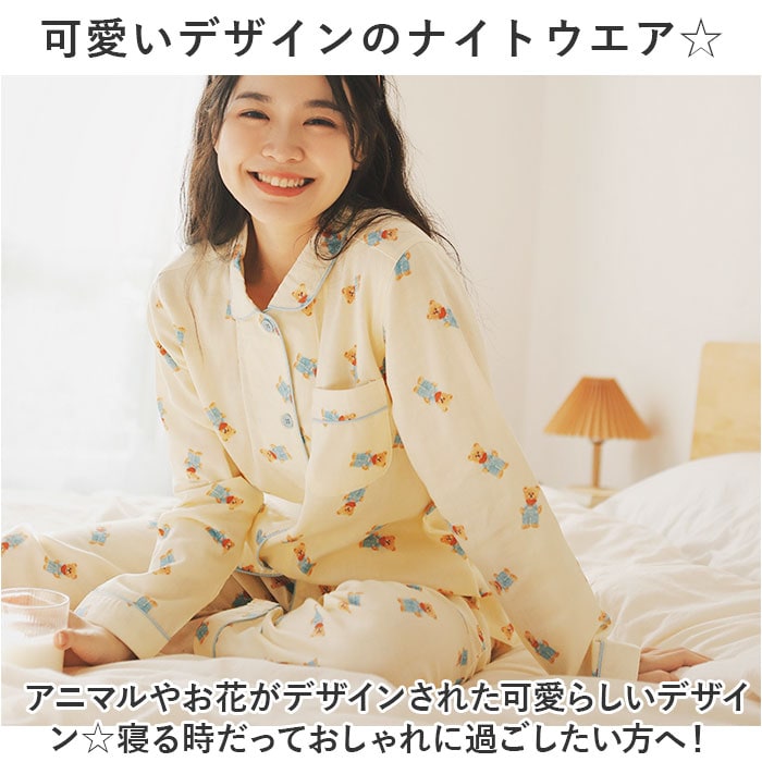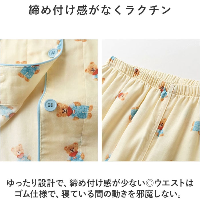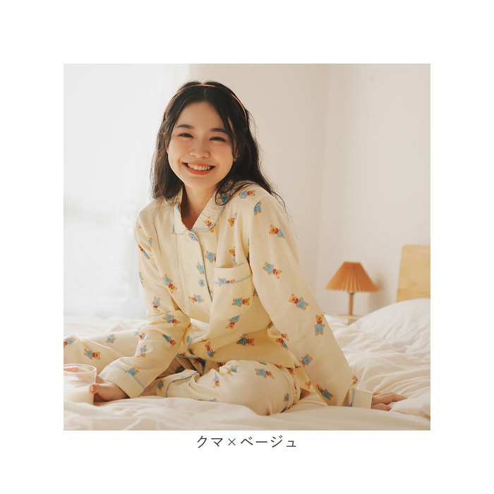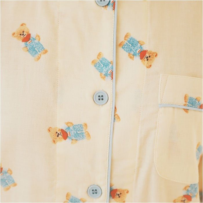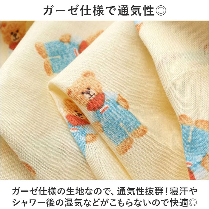 パジャマ ルームウェア 100%綿ダブルガーゼ ykrwkeai75【クマ×ベージュ】【XL】