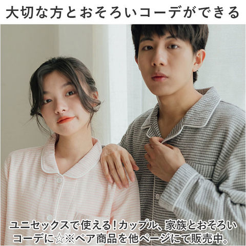 | 商品説明 | カップル、ご家族とおそろいに☆コットン100%の柔らかさが魅力のパジャマ ルームウェアが登場。【コットン100%の柔らかな着心地】コットン100%の柔らかな着心地が魅力。素肌に触れても安心でリラックスタイムにぴったり♪【ふんわり微起毛でホッとする♪】寒い日や季節の変わり目にぴったりな、ふんわり微起毛。着た瞬間にヒヤっとせず、ホッと一息♪【大切な方とおそろいコーデができる】ユニセックスで使える!カップル、家族とおそろいコーデに☆※ペア商品を他ページにて販売中。【締め付け感がなくラクチン】ゆったりめの設計で、締め付け感が少ない◎ウエストはゴム仕様でラクチン!【キレイに魅せるVネックデザイン】男性も女性もキレイに魅せる、Vネックデザインがポイント。お家時間もスタイリッシュに♪【スマホをINできるポケット仕様】ちょっとした物を入れられる胸ポケット付き。お部屋の移動時など、とっても便利☆ |