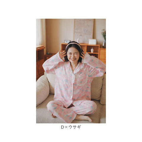 パジャマ ルームウェア 100%綿 ふわふわ ykrwyouyji69【D×ウサギ】【M】