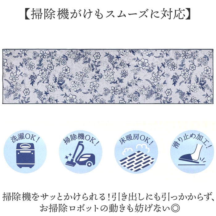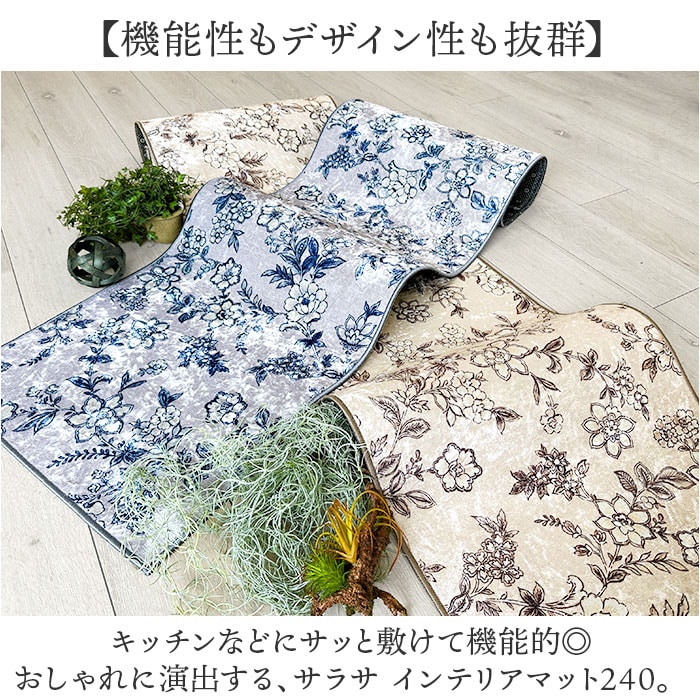 | 商品説明 | 【機能性もデザイン性も抜群】キッチンなどにサッと敷けて機能的◎おしゃれに演出する、サラサ インテリアマット240。【高級感のあるインテリアマット】光の角度によって輝く生地感♪上品な花柄デザインで、空間を素敵に彩るアイテム。【掃除機がけもスムーズに対応】掃除機をサッとかけられる!引き出しにも引っかからず、お掃除ロボットの動きも妨げない◎【丸洗いできてお手入れがラクラク】汚れが気になったら、ネットに入れて洗濯機へ。薄型なので、コンパクトに畳むことが可能。(※)ドラム式洗濯機は、機種によりご使用いただけない場合がございます。【床暖房対応でオールシーズン重宝】引っ越しの際の買い替えや、季節によっての使い分けも不要。【滑りにくくフローリングでも安心】滑りにくい加工を施した裏面。嫌なズレもガードできる! |