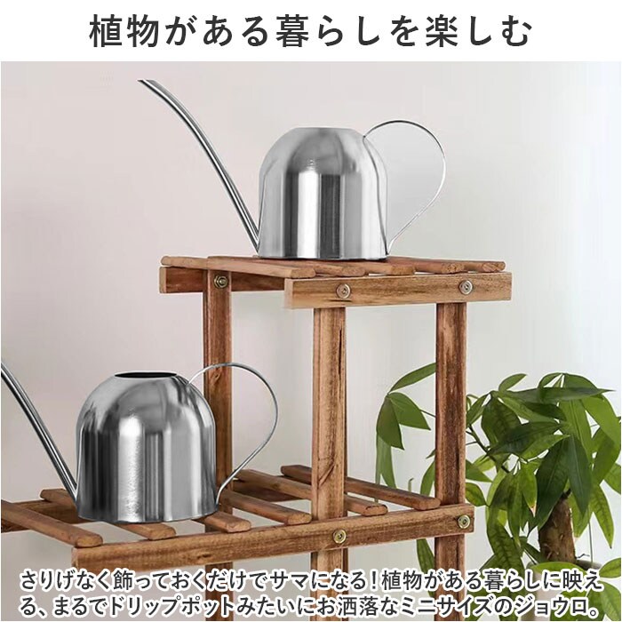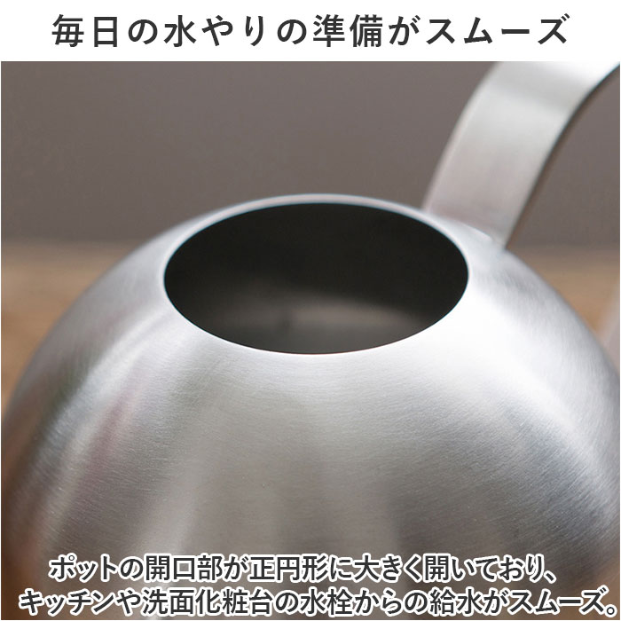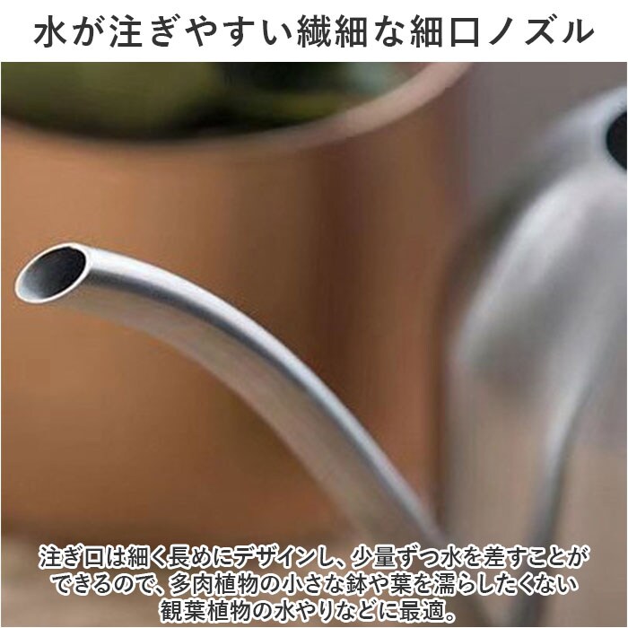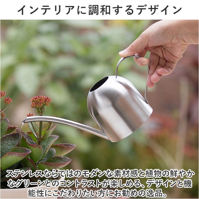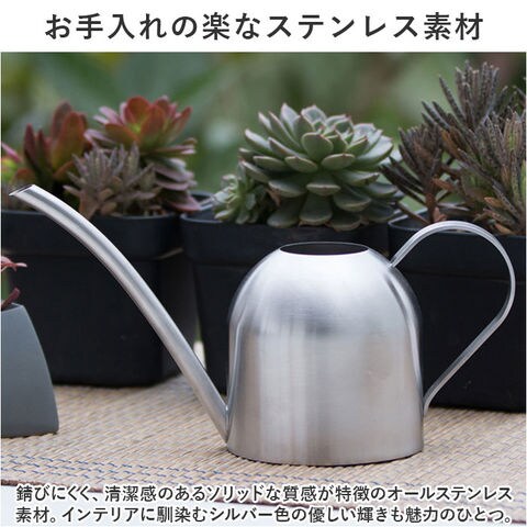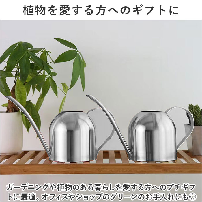 | 商品説明 | お部屋に飾ったグリーンを素敵に引き立てる!コンパクトでオシャレな「ウォータリングポット」(500mlタイプ)が新登場。【植物がある暮らしを楽しむ】さりげなく飾っておくだけでサマになる!植物がある暮らしに映える、まるでドリップポットみたいにお洒落なミニサイズのジョウロ。【シンプルなのに使いやすい】コロンと丸みのある柔らかなフォルムのポットに、緩やかなカーブで握りやすいハンドルを組み合わせたシンプルデザイン。【お手入れの楽なステンレス素材】錆びにくく、清潔感のあるソリッドな質感が特徴のオールステンレス素材。インテリアに馴染むシルバー色の優しい輝きも魅力のひとつ。【毎日の水やりの準備がスムーズ】ポットの開口部が正円形に大きく開いており、キッチンや洗面化粧台の水栓からの給水がスムーズ。【小ぶりに見えて、たっぷり容量】コンパクトな見た目ながら、ポットの容量はペットボトル飲料と同じ500ml。何度も給水する手間がなく、毎日の植物の世話がグッと楽に。【水が注ぎやすい繊細な細口ノズル】注ぎ口は細く長めにデザインし、少量ずつ水を差すことができるので、多肉植物の小さな鉢や葉を濡らしたくない観葉植物の水やりなどに最適。【インテリアに調和するデザイン】ステンレスならではのモダンな素材感と植物の鮮やかなグリーンとのコントラストが楽しめる、デザインと機能性にこだわりたい方にお勧めの逸品。【植物を愛する方へのギフトに】ガーデニングや植物のある暮らしを愛する方へのプチギフトに最適。オフィスやショップのグリーンのお手入れにもオススメ。 |