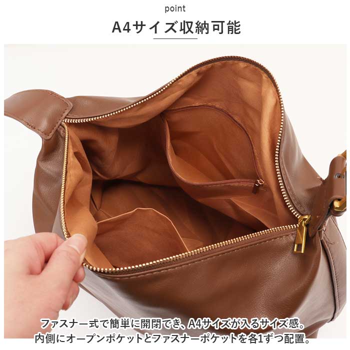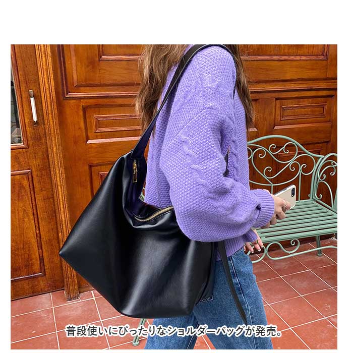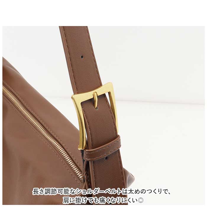 商品説明普段使いにぴったりなショルダーバッグが発売。【A4サイズ収納可能】ファスナー式で簡単に開閉でき、A4サイズが入るサイズ感。内側にオープンポケットとファスナーポケットを各1ずつ配置。【柔らか素材】柔らかい合皮素材を使用しており、手触りも滑らかで上品な印象。【太めのベルト】長さ調節可能なショルダーベルトは太めのつくりで、肩に掛けても痛くなりにくい◎【シンプルデザイン】ビジネスやカジュアルにも合わせやすいシンプルなデザインとカラー。