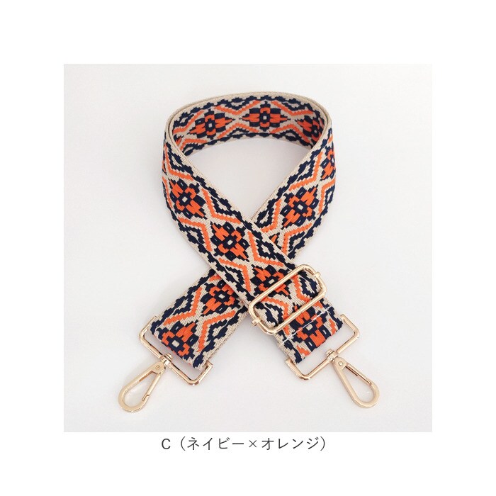 ショルダーストラップ ショルダーベルト 刺繍【C(ネイビー×オレンジ)】
