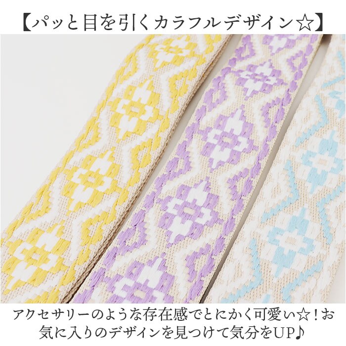 | 商品説明 | 【いつものバッグを簡単イメチェン☆】カラフルデザインのおしゃれなアクセント!「ショルダーストラップ 刺繍」が登場。【いろんなバッグにつけるだけでOK◎】いつものバッグにカチッと着ければ、簡単にイメチェンができちゃう優れモノ!気軽にチェンジ☆【幅広設計でストレスフリー!】荷物の重さを分散する、幅広設計を採用。肩に食い込みにくく、長時間の使用でも疲れにくい◎【パッと目を引くカラフルデザイン☆】アクセサリーのような存在感でとにかく可愛い☆!お気に入りのデザインを見つけて気分をUP♪【こだわりの使い心地】金具の接続部分は360度回転するので、お出かけ先でもスムーズに扱える!もちろん長さ調整も◎【ゴールドパーツで大人っぽく】金具部分は高見えするゴールドを採用。カジュアルだけど大人にも似合う、キレイ魅せポイント☆ |
