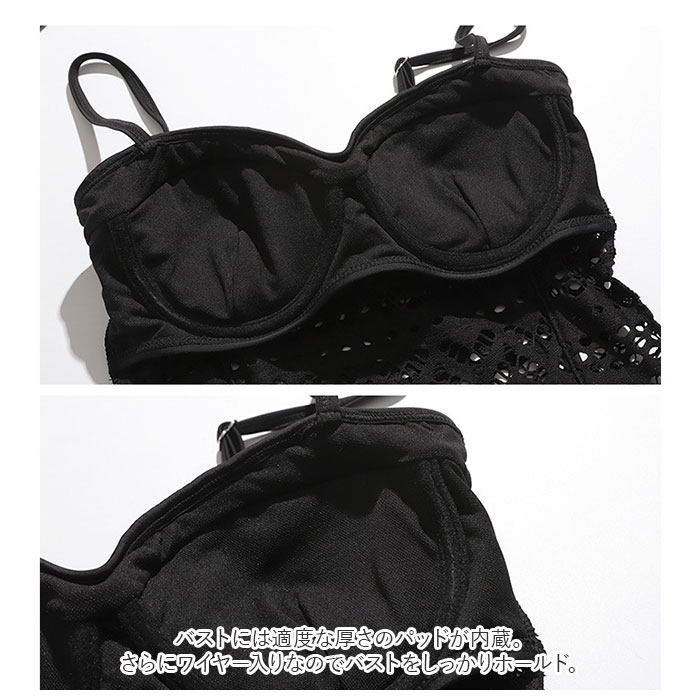 | 商品説明 | 透け感が大人っぽい♪体型カバーも出来ちゃうワンピース水着。全身総レース風デザインでセクシーな印象を演出。バストには適度な厚さのパッドが内蔵。さらにワイヤー入りなのでバストをしっかりホールド。肩紐は調節が出来るので、自分サイズに心地よくフィット。腰回りのスカートが気になるお腹~お尻、太ももをカバーしてくれる。シンプルなカラーバリエーションでティーンエイジャーはもちろん大人女子でも着られるアイテム。 |