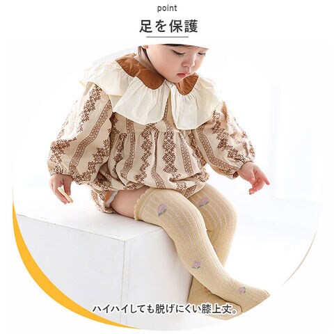 | 商品説明 | どんなコーデにも合わせやすいシンプルなデザイン♪ベビー用ハイソックスが新登場。【足を保護】ハイハイしても脱げにくい膝上丈。【快適な履き心地】伸縮性があり、締めつけ感のない快適な履き心地。履き口のフリルデザインがポイント!【オールシーズン着用可能】デリケートな赤ちゃんのお肌に優しい素材を使用。肌寒い時期や冷房の冷え対策にぴったり◎【ナチュラルカラー】優しい色合いのバリエーション♪ |