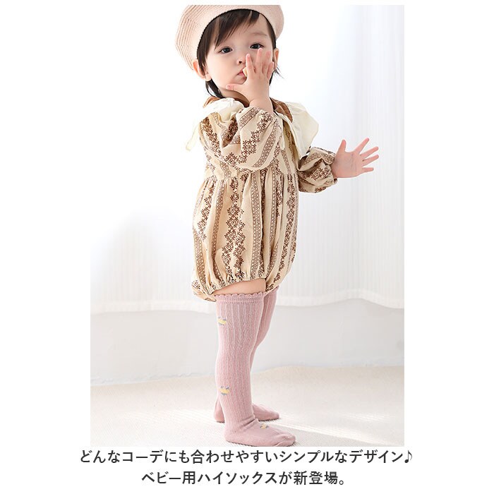 | 商品説明 | どんなコーデにも合わせやすいシンプルなデザイン♪ベビー用ハイソックスが新登場。【足を保護】ハイハイしても脱げにくい膝上丈。【快適な履き心地】伸縮性があり、締めつけ感のない快適な履き心地。履き口のフリルデザインがポイント!【オールシーズン着用可能】デリケートな赤ちゃんのお肌に優しい素材を使用。肌寒い時期や冷房の冷え対策にぴったり◎【ナチュラルカラー】優しい色合いのバリエーション♪ |