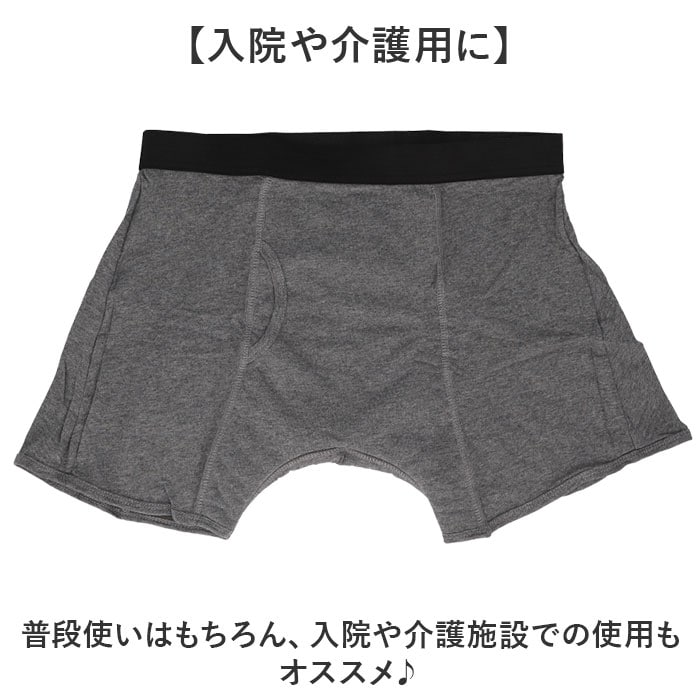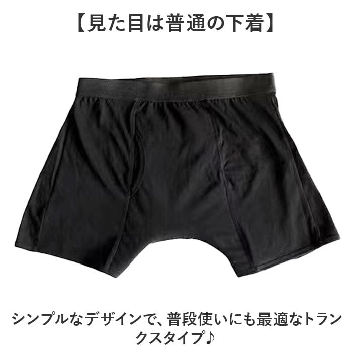 | 商品説明 | 【もしもの時も安心】前後に大きな吸水パッド付き!漏れやズボンへのシミ付きを防止するメンズパンツ。【見た目は普通の下着】シンプルなデザインで、普段使いにも最適なトランクスタイプ♪【漏れをガード】前後に大きな吸水パッドを装備し、漏れやズボンなどの衣服へのシミ付きを軽減。【平ゴム仕様でストレスフリー】ウエストには伸縮性のある平ゴム仕様で、締め付け感が少なくストレスフリーに穿ける【チクチクしない生地感】綿素材の生地を使用し、チクチクしない優しい肌触りも嬉しいポイント。【入院や介護用に】普段使いはもちろん、入院や介護施設での使用もオススメ♪ |