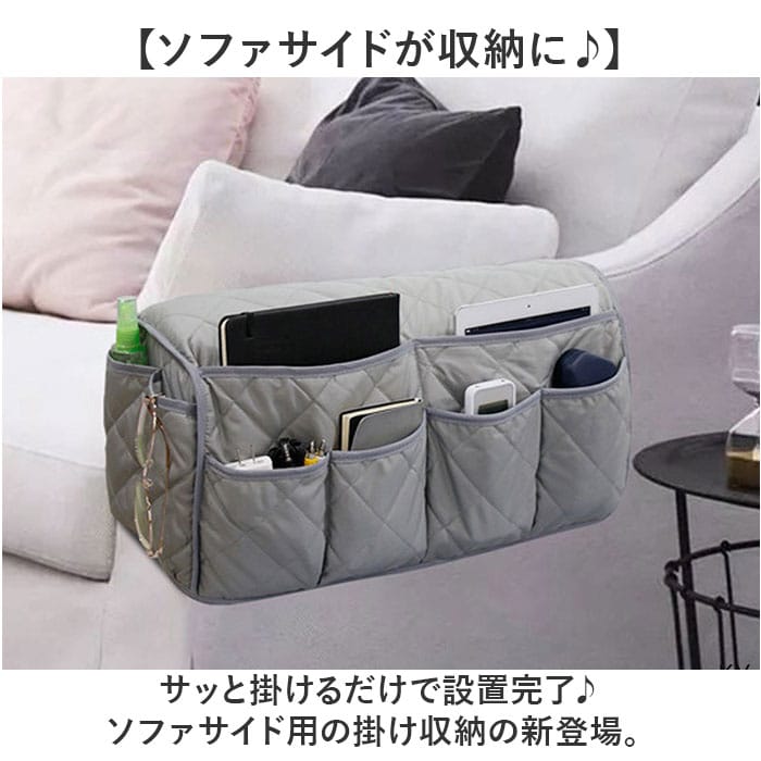 | 商品説明 | 【ソファサイドが収納に♪】サッと掛けるだけで設置完了♪ソファサイド用の掛け収納の新登場。【簡単に設置可能】ひじ掛け部分にさっと掛けるだけで設置可能◎工具の必要がなく気軽に設置♪【迷子になりがちな小物をIN】リモコンや眼鏡、スマホなど散らかったり迷子になりがちな小物の収納にピッタリなサイズ。【14ポケットで整理整頓】合計14ポケット搭載し、整理整頓しながら収納できるのも嬉しいポイント。【汚れや水分が付きにくい】表地は撥水加工が施されており、水分や汚れが付いてもしみ込みにくく拭き取れる◎※(※)完全防水ではございません。【インテリアを選ばない】ワンカラーのキルティングデザインで様々なインテリアにマッチ。【選べるカラバリ】ソファのカラーや好きな色から選べるカラーバリエーション☆ |