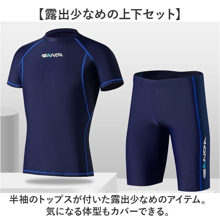 メンズ水着 上下セット【Aタイプ×ネイビー】【XL】