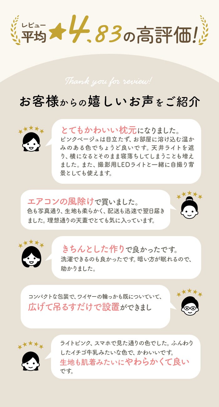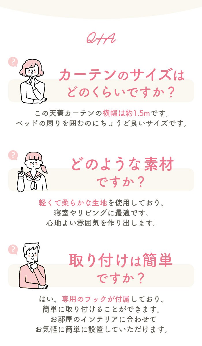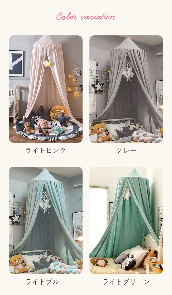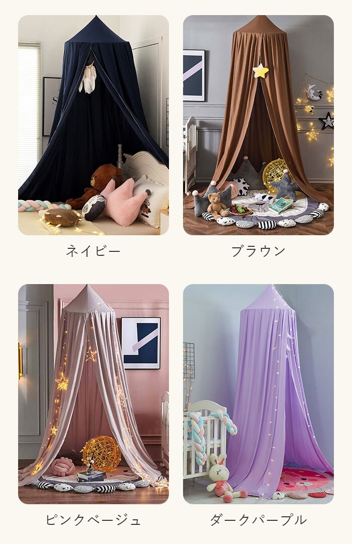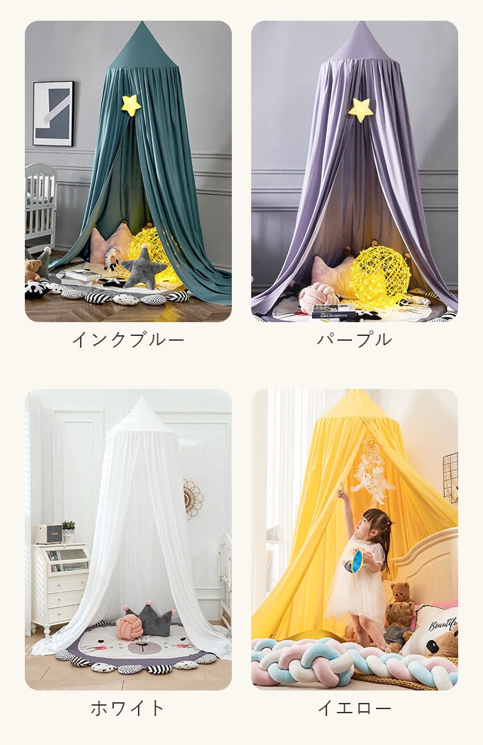 | 商品説明 | 吊るすだけで、ベッド周りを華やかに演出♪天蓋タイプで雰囲気たっぷり「スリーピングカーテン」が新登場。屋外の明かりや照明の光が強すぎる・・・。エアコンの風が直接当たって冷えが気になる・・・。お休みタイムのそんなお悩みは「スリーピングカーテン」解決!サークル型のワイヤーフレームから、カーテン生地の裾をたっぷりと伸ばしたオシャレな天蓋仕様。子ども部屋のベッドやプレイスペースに設置するだけで、おとぎ話のプリンセス気分♪ベビーベッドを覆うように取り付ければ、蚊など虫除け、エアコンの風除けとして、赤ちゃんのためのよりよい睡眠環境づくりに最適。巣ごもりタイムをゆったり過ごしたい、大人のプライベートスペースを確保したいときにも大活躍!横幅約1.5メートルのシングルベッドがすっぽり覆えるサイズ感。天蓋カーテンを天井から吊り下げるフック付き掛け具は、ネジや3M製の強力両面テープで誰でも簡単に設置が可能。汚れが気になった時は、洗濯ネットに入れてご家庭で手軽にお洗濯が可能。(※アイロンがけはお避けください。)出産祝い用のギフトや、お誕生日プレゼントにオススメ。 |