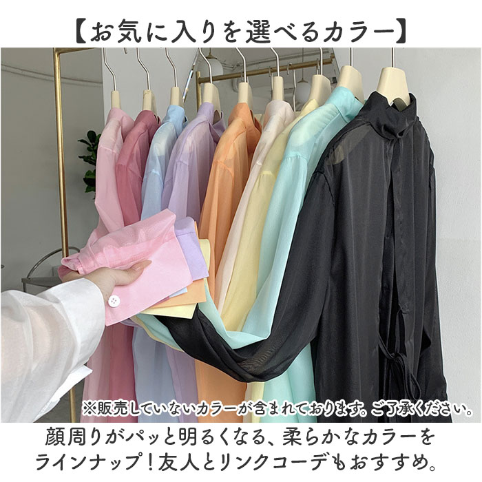 | 商品説明 | 【トレンド感のあるコーデが叶う!】涼しげでフェミニンな印象を演出♪おしゃれにキマる「シアーシャツ」が新登場。【女性らしい抜け感をプラス】キャミソールなどのインナーの上にONするだけ。透け感のあるシアー素材でヘルシーに肌魅せ♪【軽やかな着心地でノンストレス】ゆったりラフに羽織れるアイテム。気になる部分をふんわりカバーしたり、冷房対策にも。【デザイン性の高いバックスリット】背中にはスリットを入れ、後ろ姿も抜かりなく。リボンを結んでキュートなスタイルに☆【お気に入りを選べるカラー】顔周りがパッと明るくなる、柔らかなカラーをラインナップ!友人とリンクコーデもおすすめ。 |