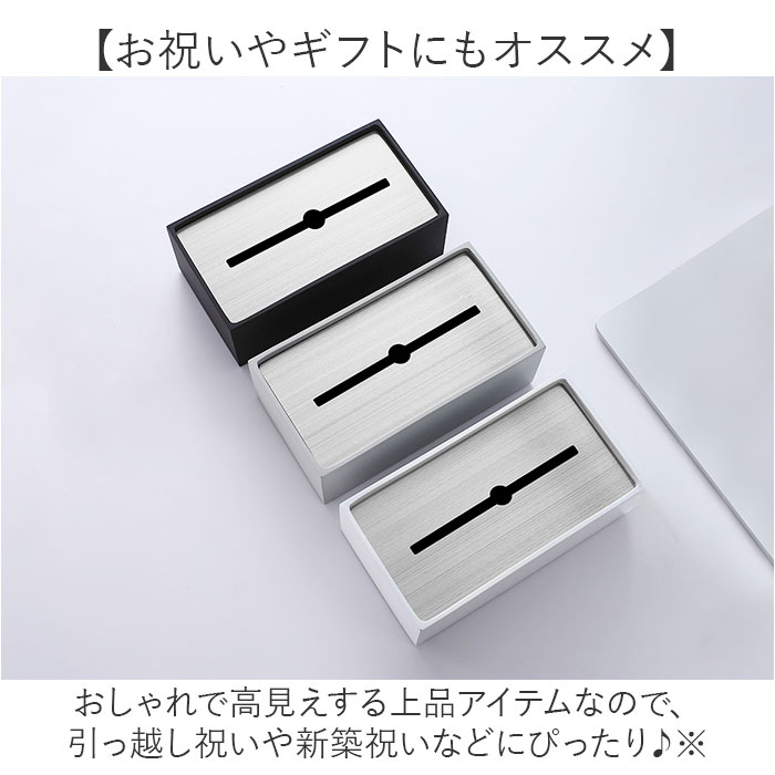 | 商品説明 | 【置くだけでホテルライクな空間に♪】重厚感&高級感のある、洗練されたデザイン。「モダン ティッシュボックス」が登場。【生活感を出したくない方へ♪】リビングや寝室、サニタリールームをホテルのような雰囲気にチェンジしてくれるアイテム。【見とれるほどにスタイリッシュ】無駄のないシンプルさと落ち着いたカラー。上蓋はステンレス製でインテリアのように美しい。【使いやすさも追求】上蓋は重くティッシュが取り出しやすい。バネ付きで、最後の1枚までノンストレスの使用感。【どこに置いても安心の保護材付き】粘着タイプの保護材をセットに。四隅に貼れば、テーブルや洗面台を傷つける心配なし。【お祝いやギフトにもオススメ】おしゃれで高見えする上品アイテムなので、引っ越し祝いや新築祝いなどにぴったり♪※使用するティッシュのサイズをお確かめください。 |