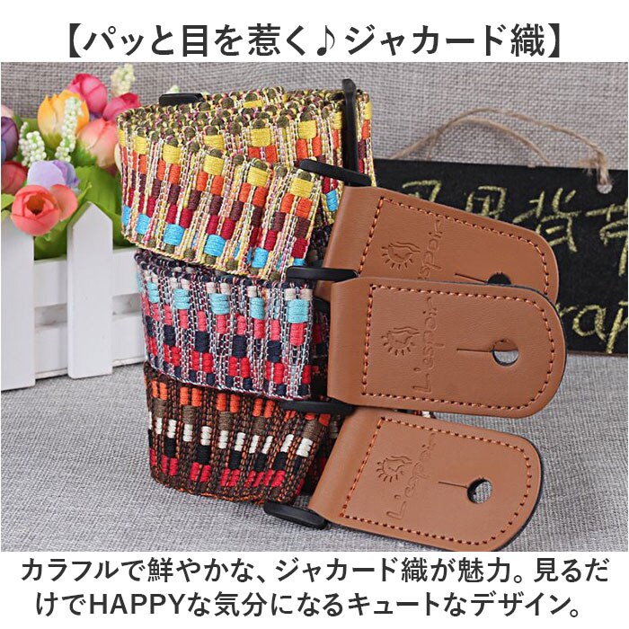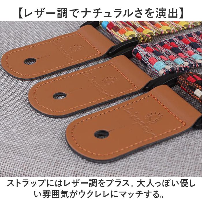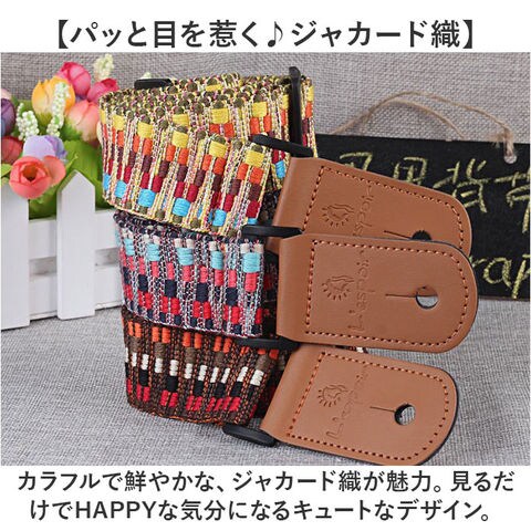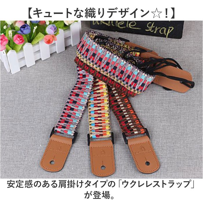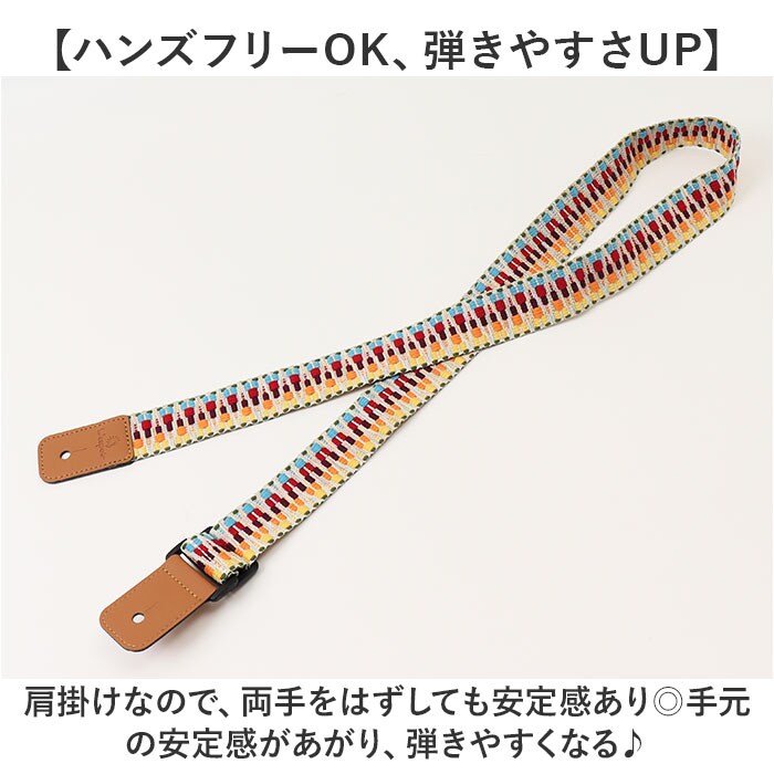 | 商品説明 | 【キュートな織りデザイン☆!】安定感のある肩掛けタイプの「ウクレレストラップ」が登場。【パッと目を惹く♪ジャカード織】カラフルで鮮やかな、ジャカード織が魅力。見るだけでHAPPYな気分になるキュートなデザイン。【レザー調でナチュラルさを演出】ストラップにはレザー調をプラス。大人っぽい優しい雰囲気がウクレレにマッチする。【ハンズフリーOK、弾きやすさUP】肩掛けなので、両手をはずしても安定感あり◎手元の安定感があがり、弾きやすくなる♪【軽くて柔らか♪疲れにくい】ストラップの重さは約52gと軽い!柔らかな生地で、幅広設計だから食い込みにくい◎【ギフトにもオススメ】ウクレレ好きな方や、ウクレレとセットで贈るのもGOOD☆ |