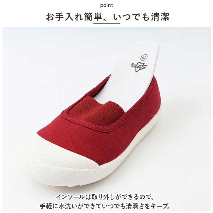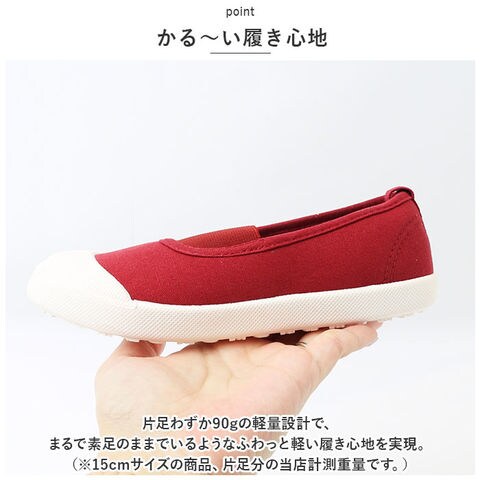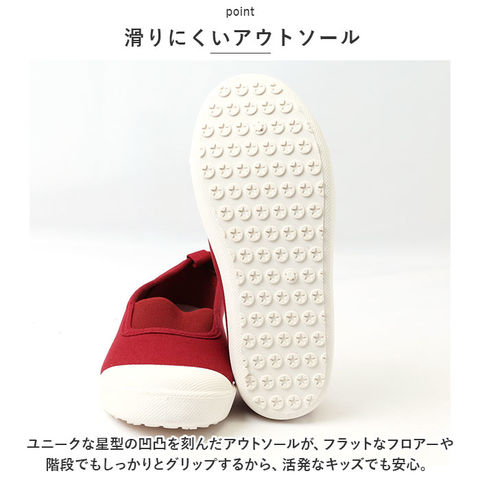 | 商品説明 | スクールスタイルの足元に、ほんのり自分色をプラス♪ちょっぴり大人色が可愛い「キッズ用スクールシューズ(上履き)」が新登場。【キッズの足に優しいつくり】程よいクッション性のあるインソールと、厚みのある合成ゴムのフットベッドがキッズの足裏にかかる衝撃や負担を優しく軽減。【かる~い履き心地】片足わずか90gの軽量設計で、まるで素足のままでいるようなふわっと軽い履き心地を実現。(※15cmサイズの商品、片足分の当店計測重量です。)【丸いカタチがつま先をガード】アウトソール先端は、つま先部分を包み込むように丸いフォルムに仕上げ、うっかりつま先をぶつけてしまっても痛くない安心仕様。【スポッと履けるセンターゴア】混雑する学校の昇降口でもスポッと履ける!幅広タイプのセンターゴアが足の甲にぴったりフィットして、脱ぎ履きがスムーズ。【滑りにくいアウトソール】ユニークな星型の凹凸を刻んだアウトソールが、フラットなフロアーや階段でもしっかりとグリップするから、活発なキッズでも安心。【抜群の動きやすさ】屈曲性に優れたアウトソールは動きやすさも抜群。軽くて動きやすいため、体育館での運動やダンスのような習い事にも大活躍!【お手入れ簡単、いつでも清潔】インソールは取り外しができるので、手軽に水洗いができていつでも清潔さをキープ。【キッズも大満足の大人カラー】ホワイトと学年カラーのオーソドックスな上履きでは満足できないお洒落キッズに最適。ベーシック&くすみカラーの落ち着いた大人カラーも魅力のひとつ。 |