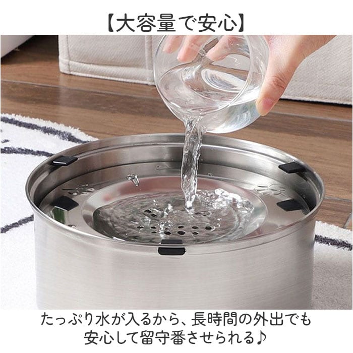 | 商品説明 | 【3L大容量給水器】長時間の外出も安心、ペットに清潔な水を届ける給水器。【大容量で安心】たっぷり水が入るから、長時間の外出でも安心して留守番させられる♪【浮き蓋で清潔キープ】浮き蓋式だからほこりやゴミが入りにくく、いつでも清潔な水を飲ませてあげられる優れもの◎【ステンレス製で頑丈】304ステンレス製で丈夫だから、錆びにくく長く使えて、衛生面でも安心な高品質〇【滑り止め付きで安定】底に滑り止めが付いているから、ペットが飲んでもズレにくく、床を傷つけない。【お手入れ簡単】ステンレスだからお手入れが簡単で、汚れもサッと落ちて、いつも清潔に保てる! |