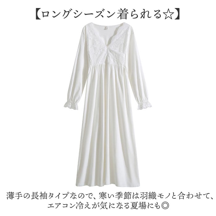 | 商品説明 | 【ラクチンなのにとってもキュート♪】ルームウエアにこだわりたい方へ「ロングパジャマ ワンピース お姫様ネグリジェ」が登場。【レースのVネックで大人っぽく】胸元のレースと少し深めのVネックで、大人の魅力を演出。ルームウエアに見えないおしゃれさ【ゆったりロング丈でリラックス♪】締め付け感のないワンピタイプ。露出を控えたロング丈が、まったりタイムにぴったり。【サラっと軽く、のびのびストレッチ】サラっとした心地のよい生地と、就寝時ものびのび着られるストレッチ性が魅力。【袖口にはゴム&レースをON】腕まくりがしやすいよう、袖口にはゴムを配置。家事もしやすい仕様。レースで可愛さup。【ロングシーズン着られる☆】薄手の長袖タイプなので、寒い季節は羽織モノと合わせて、エアコン冷えが気になる夏場にも◎ |