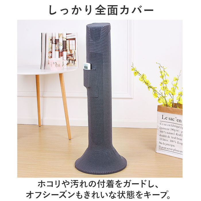 | 商品説明 | のびのび素材でピッタリフィット!タワーファン収納カバーが登場。【被せるだけでとっても簡単】伸縮性のある生地を使用しているのでサッと被せてピッタリフィット。外す際もスムーズ。【しっかり全面カバー】ホコリや汚れの付着をガードし、オフシーズンもきれいな状態をキープ。【ナチュラルなワッフル生地】凹凸のある柔らかなワッフル生地を使用。リモコンの収納に便利なポケット付き。【撥水加工で安心】撥水加工を施した生地を使用しているので、湿気対策にも◎【繰り返し使えるカバー】汚れが気になったら、自宅でお洗濯OK。衛生的&繰り返し使えるのが嬉しい!【選べるカラー】インテリアにも調和するシンプルな無地カラーから、お好みをチョイス☆ |