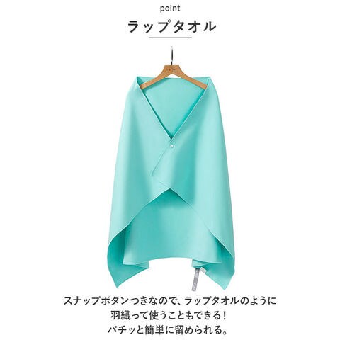 | 商品説明 | 速吸収&速乾で使いやすい◎コンパクトに持ち運びができる「ラップタオル 収納バンド付き」が登場。【速吸収&速乾】細かく綿密な繊維がすばやく吸水、すぐに速乾!プールやジム、お風呂上りなど、幅広く活躍する便利なアイテム。【ゴムバンドつき】タオルをクルっと丸めてゴムバンドで留めれば、コンパクトサイズに!持ち運びに便利なのも嬉しいポイント。【薄くて軽量】タオルの重さは約216g。速乾性に優れているので、水濡れしても重くなりにくい。薄手なのでかさばらない◎【シンプルデザイン】ユニセックスで使えるシンプルデザイン。子供から大人まで使えるので、家族でお揃いにしたり共有するのもGOOD。【ラップタオル】スナップボタンつきなので、ラップタオルのように羽織って使うこともできる!パチッと簡単に留められる。※スナップボタンは1つです。 |