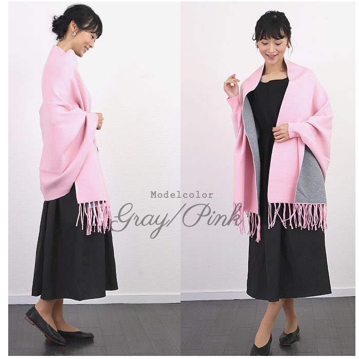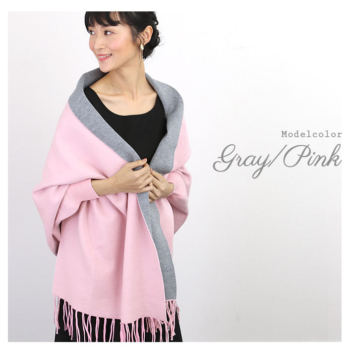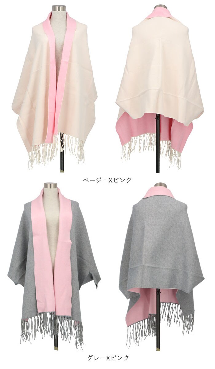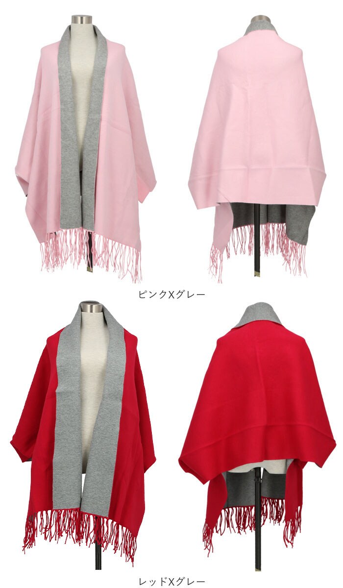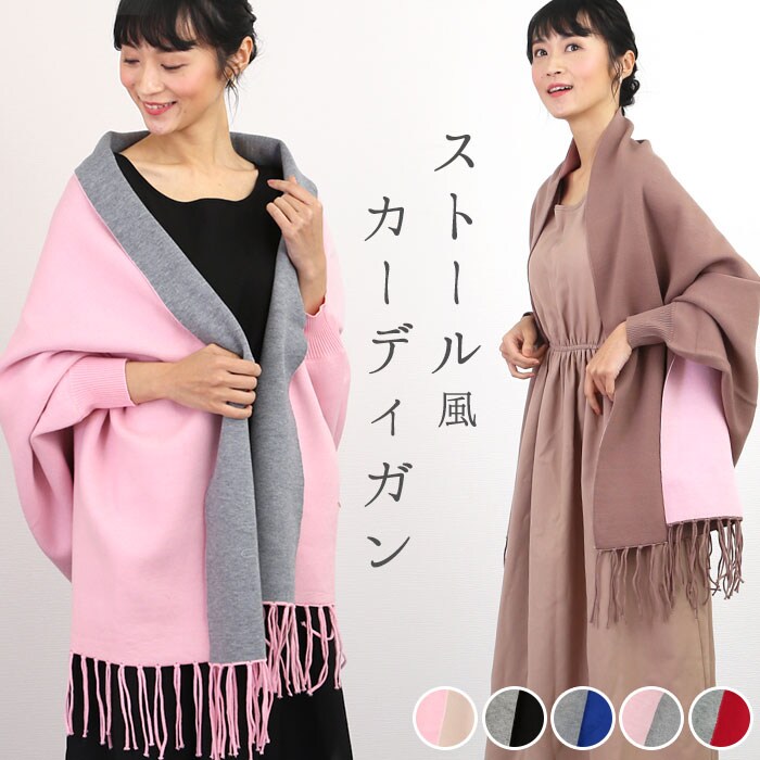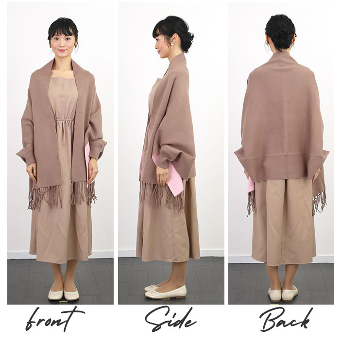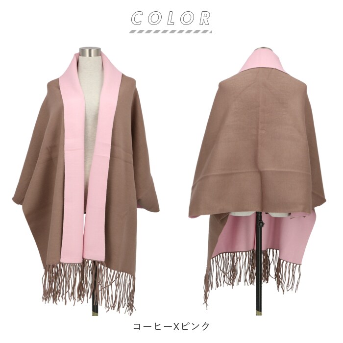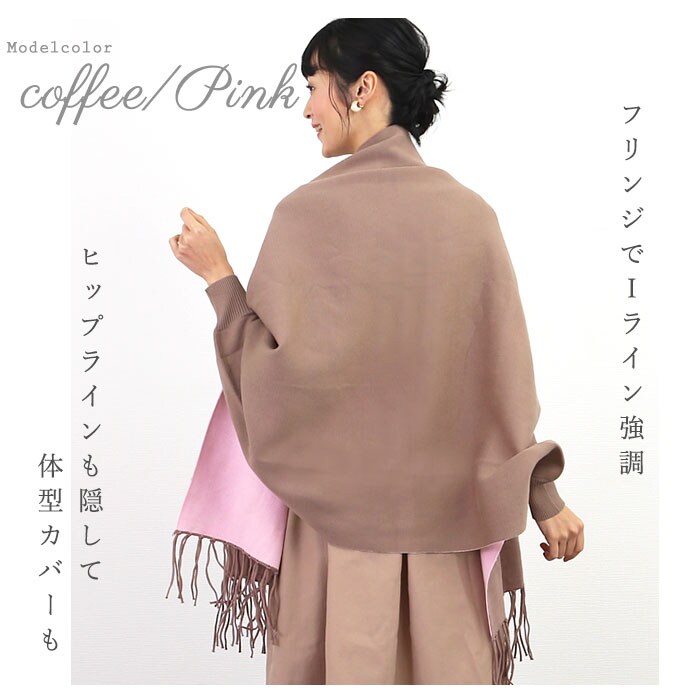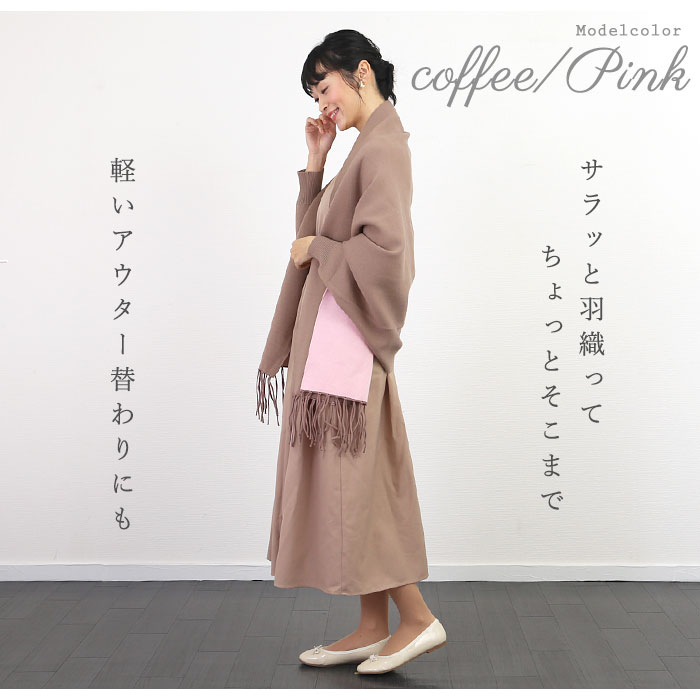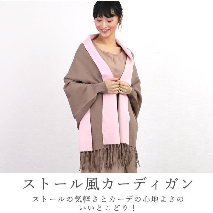 ストールカーディガン【コーヒーXピンク】【フリーサイズ】