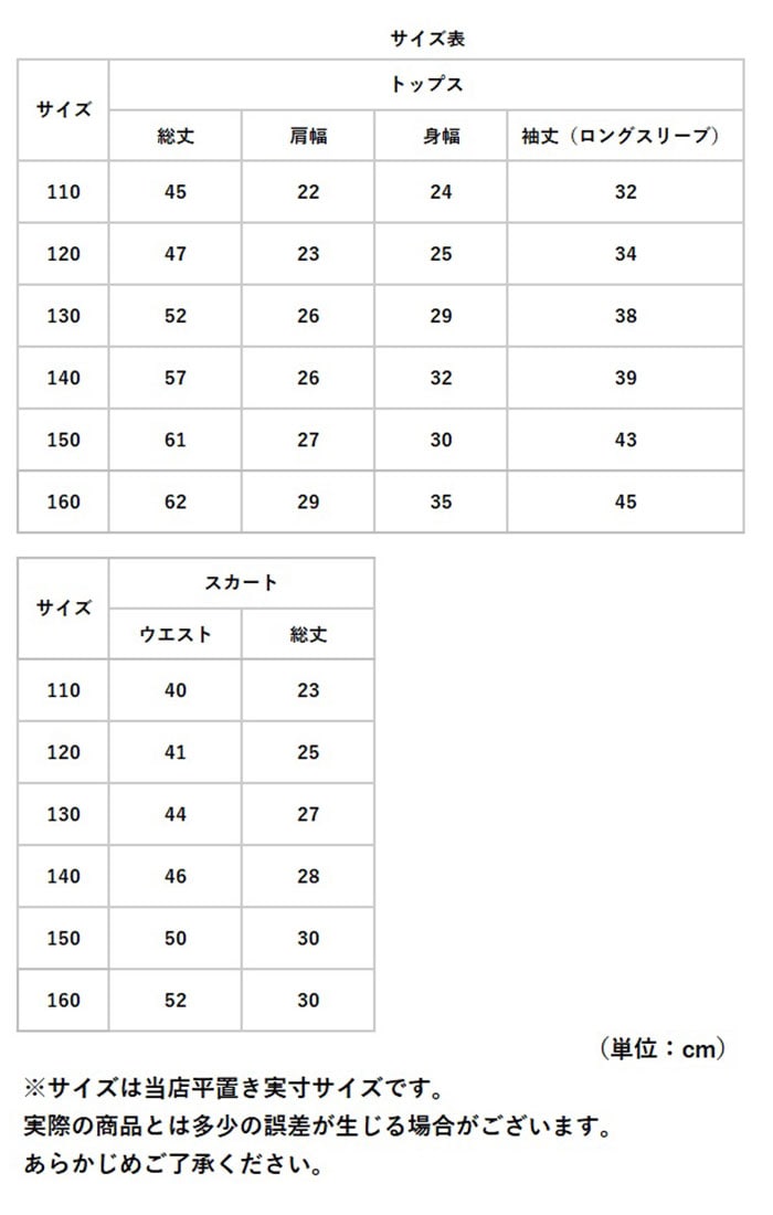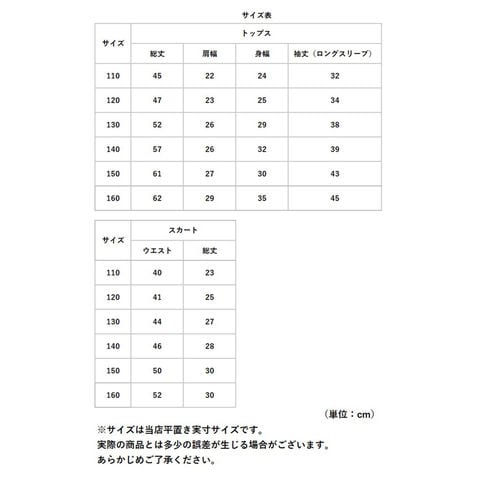 | サイズ | [キッズ](ロングスリーブ・ノースリーブ) ・110cmサイズ ・120cmサイズ ・130cmサイズ ・140cmサイズ ・150cmサイズ ・160cmサイズ ※サイズについて詳細は、商品画像の中にあるサイズ表をご覧くださいませ。 |