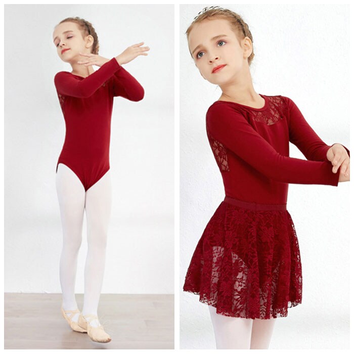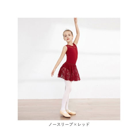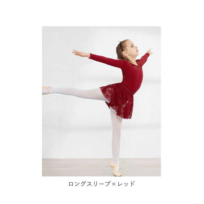 バレエ レオタード 上下セット キッズ yleotard5062【ロングスリーブ×レッド】【150cm】
