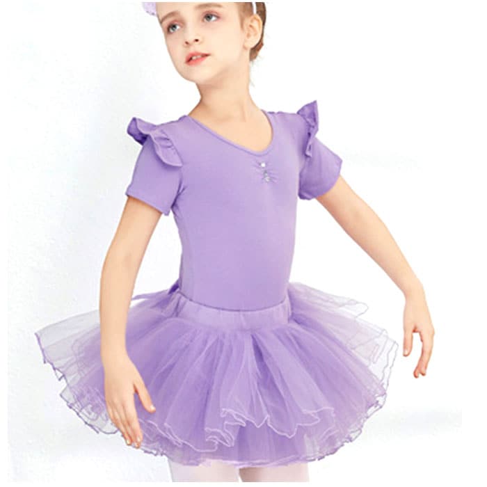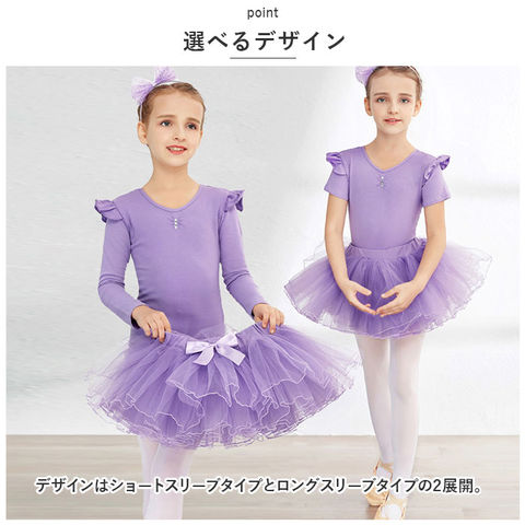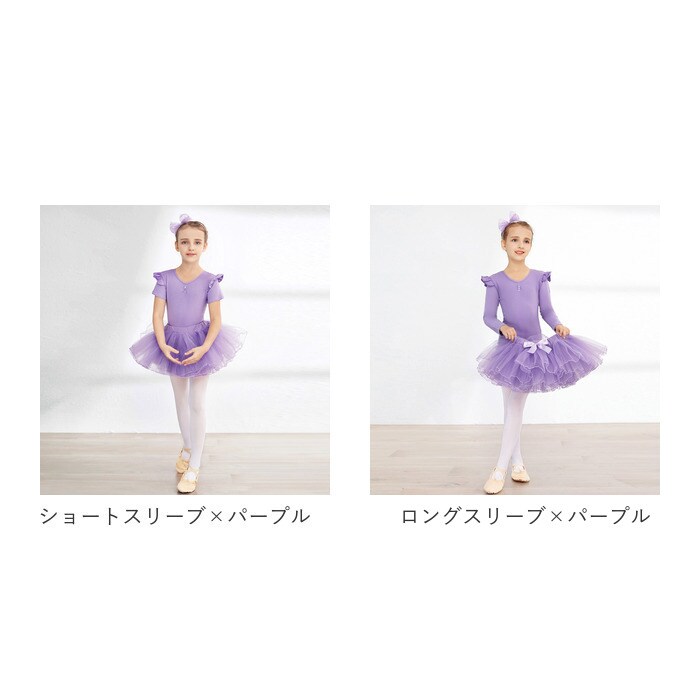 バレエ レオタード 上下セット キッズ yleotard5063【ショートスリーブ×パープル】【150cm】