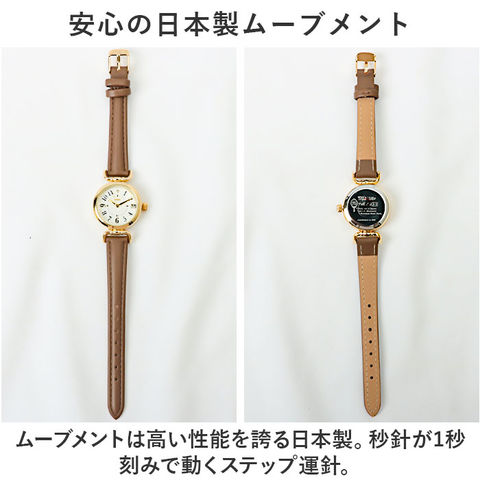 | 商品説明 | アクセサリー感覚で身につけられる、おしゃれなデザイン♪大人女子にぴったりな腕時計「アイバニー」が新登場。【アンティーク感のある仕上がり】どこか懐かしくも上品さを残したアイテム。程よく存在感のある文字盤や、ベルトと文字盤をつなぐパーツデザインがポイント。【こだわりの文字盤】ゴールド&シルバーカラーの数字や、12時の位置に配置されたストーンがキラッと輝く☆文字盤ケース横のつまみで、簡単に時刻調節が可能。【便利なデイト表示機能】・3時の位置に配置された小窓で日付を確認OK。ビジネスシーンでも重宝。【自分サイズにフィット】ベルトは7段階長さ調節OK。女性の華奢な手元にマッチするよう細めに設計されており、付け心地軽やか。【安心の日本製ムーブメント】ムーブメントは高い性能を誇る日本製。秒針が1秒刻みで動くステップ運針。【オン・オフ問わず活躍】どんなスタイルにもマッチするデザインが魅力。お気に入りのベルトカラーをチョイスして♪ |