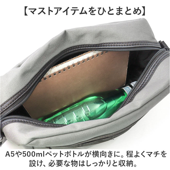 | 商品説明 | 【サッと持ち出せて頼れる相棒】色んなシーンでラフに使える!「chou-porte BOLD LINE ショルダーバッグ」。【エイジレスな定番カジュアル】持つ人を選ばないシンプルデザイン。落ち着きのあるカラーに、光沢のあるテープがアクセント!【両手が空いて移動がラクラク】長さを調節可能なショルダーを使い、肩掛けや斜め掛け。アクティブシーンも快適。【開閉スムーズ、安心のファスナー式】ガバっと開いて取り出しやすく、ファスナーを閉じれば中身の飛び出しをガード。【マストアイテムをひとまとめ】A5や500mlペットボトルが横向きに。程よくマチを設け、必要な物はしっかりと収納。【サクッと取り出せて迷子知らず】合計4つのポケットを配置。細々した物も、バッグの中で探す手間が不要。【軽やか&ガシガシ使えて万能】体に負担をかけない軽量設計。丈夫な素材で仕上げており、気軽に使えるのが嬉しい!【お気に入りを選べるカラー】コーデに馴染みやすいカラーをラインナップ。メンズライクなデザインながら、シェアもOK。【ポケット仕様】内側:オープンポケット×2前面:ファスナーポケット×1背面:ファスナーポケット×1 |