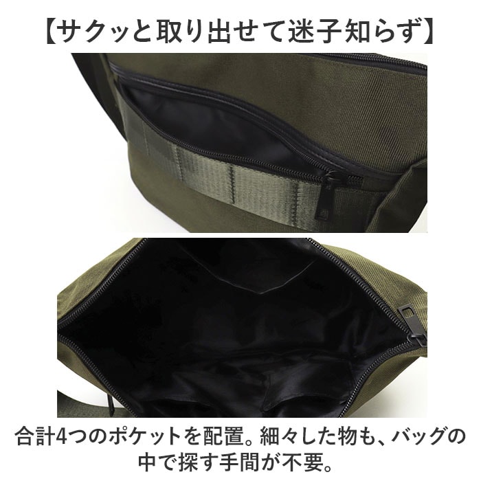 商品説明【サッと持ち出せて頼れる相棒】色んなシーンでラフに使える!「chou-porte BOLD LINE ショルダーバッグ」。【エイジレスな定番カジュアル】持つ人を選ばないシンプルデザイン。落ち着きのあるカラーに、光沢のあるテープがアクセント!【両手が空いて移動がラクラク】ショルダーの長さを調節して斜め掛け。体にフィットする形状で、アクティブシーンも快適。【開閉スムーズ、安心のファスナー式】ガバっと開いて取り出しやすく、ファスナーを閉じれば中身の飛び出しをガード。【マストアイテムをひとまとめ】A5や500mlペットボトルが横向きに。程よくマチを設け、必要な物はしっかりと収納。【サクッと取り出せて迷子知らず】合計4つのポケットを配置。細々した物も、バッグの中で探す手間が不要。【軽やか&ガシガシ使えて万能】体に負担をかけない軽量設計。丈夫な素材で仕上げており、気軽に使えるのが嬉しい!【お気に入りを選べるカラー】コーデに馴染みやすいカラーをラインナップ。メンズライクなデザインながら、シェアもOK。【ポケット仕様】内側:オープンポケット×3前面:ファスナーポケット×1