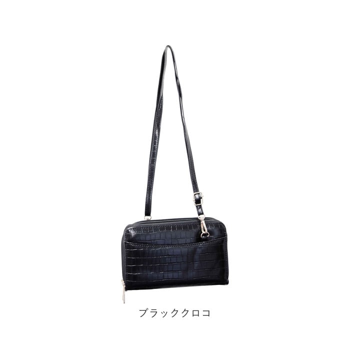 ダブルファスナー財布ショルダー【ブラッククロコ】