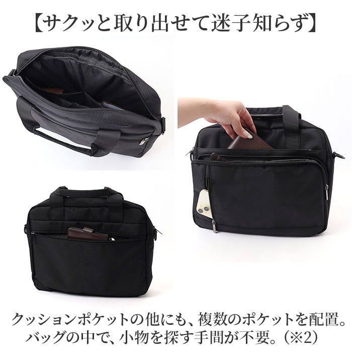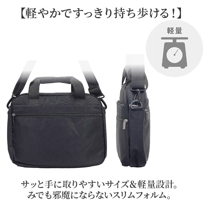 | 商品説明 | 【オン・オフ問わず活躍する相棒】コンパクトに見えて万能◎ノートPCやタブレットもOKな「メンズ カジュアルバッグ」。【軽やかですっきり持ち歩ける!】サッと手に取りやすいサイズ&軽量設計。人混みでも邪魔にならないスリムフォルム。【お好みに合わせてスタイルチェンジ】手持ちで。長さ調節可能なショルダーを取り付け、肩掛けや斜め掛けも自在な2way。【開閉スムーズ、安心のファスナー式】ガバっと開いて取り出しやすく、ファスナーを閉じれば中身の飛び出しをガード。【A4や12インチPC対応サイズ】A4がぴったり。12インチのノートPCが収納できる、クッションポケットも装備!(※1)A4対応ですが、収納物によっては角が折れるなどの可能性があります。【外部からの衝撃から守る安心構造】収納ルーム前後や底面にもクッション材入り。大切なアイテムをしっかりガード。【サクッと取り出せて迷子知らず】クッションポケットの他にも、複数のポケットを配置。バッグの中で、小物を探す手間が不要。(※2)シリーズにより、ポケットの個数が異なります。【使う人を選ばないシンプル仕上げ】落ち着きのあるカラーに、装飾を抑えたカジュアルバッグ。スタイルや年代を問わず重宝。【ポケット仕様】内側:クッションポケット×1、オープンポケット×2前面:横ファスナーポケット×2、縦ファスナーポケット×1(ブラック2/グレー2は横ファスナーポケット×2)背面:ファスナーポケット×1 |