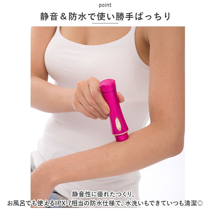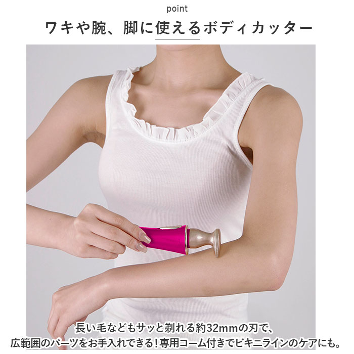 | 商品説明 | 顔も身体も、お手軽スピーディーにムダ毛ケア。「シェイバーmini ノヘア Light 4CPlus」が新登場。【4種のカッターで簡単ケア】顔や身体のパーツに合わせて使い分けできる、4種類のカッター。これ1つで手軽にケアできるのが嬉しい!別売りの単3形アルカリ乾電池1本使用。【顔や敏感な部位に使えるムダ毛カッター】肌に直接触れる部分には、金属アレルギーが起こりにくい24金メッキを採用。刃が直接触れない構造で、素早く剃れる回転式2枚刃だから安心して使用可能。【まゆや耳に使えるまゆ毛カッター】幅の狭い約8mmの刃で、まゆのキワまでキメ細やかにお手入れ。美しいまゆを作り出せて、メイクの上からも使用OK。【鼻や耳に使える鼻毛カッター】刃が直接触れないので、デリケートな鼻の穴も優しくお手入れできちゃう!切りすぎも防げて、スムーズにケア。【ワキや腕、脚に使えるボディカッター】長い毛などもサッと剃れる約32mmの刃で、広範囲のパーツをお手入れできる!専用コーム付きでビキニラインのケアにも。【便利なLEDライト付き】暗い場所でもパーツを照らせるLEDライト機能を搭載。小さなムダ毛も見逃さない♪【静音&防水で使い勝手ばっちり】静音性に優れたつくり。お風呂でも使えるIPX-7相当の防水仕様で、水洗いもできていつも清潔◎【持ち運びに便利】女性の手に馴染みやすい軽量でコンパクトなサイズ感。コスメポーチに入れて、持ち運びもラクラク。安心の日本製。 |
