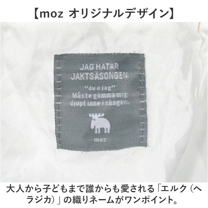 | 商品説明 | 【くるっと丸めて、5秒で収納!】北欧ブランド「moz」の人気シリーズに、「エコバッグ ビーンズ ネット」が仲間入り!【落ち着いたモノトーンが好印象】滑らかで丈夫なポリエステル生地と、シースルーメッシュを切り替えたお洒落なモノトーンカラー。【小さくたたんで手のひらサイズに】コロンと可愛い形に丸めて収納できるから、いつものバッグの片隅にしまえて、場所を取らない♪【スリムな見た目以上の収納力】スリムに見えて、約13Lの大容量。ペットボトル飲料に大きな野菜や果物もすっぽりと収納可能。【中が透けて見えるメッシュ素材】バッグの上部2/3が透けて見えるメッシュ素材。食材や小物がひと目で分かり取り出しも楽ちん。【薄くてもタフなファブリック】耐荷重:約5kgの丈夫な生地を使用しているので、2リットルのペットボトルを入れても大丈夫!【肩に優しい幅広ワンショルダー】ショルダーは重たい荷物が肩に食い込まない幅広設計。バッグがずり落ちないフェルトパット付き。【ご家庭でカンタンお洗濯】デイリー使いするアイテムだから・・・汚れが気になったら手軽にお洗濯できるのも嬉しいポイント。【普段使いにもお洒落に映える】シックなモノトーンカラーがON/OFFどちらの服装にもマッチ。お出掛け用バッグにしてもお洒落。【moz オリジナルデザイン】大人から子どもまで誰からも愛される「エルク(ヘラジカ)」の織りネームがワンポイント。【About moz -モズ- 】「moz」はインテリアメーカー「FARG&FORM社」が手掛けるスウェーデン発北欧雑貨ブランド。【たたみ方は簡単4ステップ】1. ポケットに片手を入れ、反対の手でバッグ部分をくしゃっと丸めながら手の中にまとめる。2.ポケット部分をひっくり返しながら、バッグを内側にしまいこむ。3.ポケットの反対側も上から被せるようにしまう。4.軽くカタチを整えたら完成!あっという間に手のひらサイズに。 |