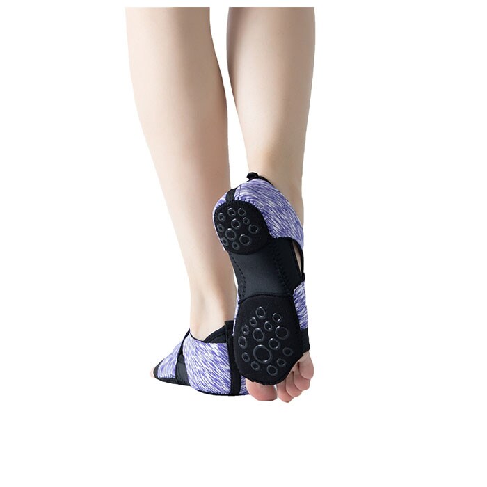 商品説明柔らかく伸縮性のある素材と足の形に沿ったデザインがポイント♪素足より快適な履き心地のヨガ靴下が発売。つま先裏と踵裏部分には合皮素材を使用。摩擦に強く耐久性があるので、長時間使用してもへたりにくい。また合皮部分にはリング状の滑り止め付きで、ケガの防止にもなる◎甲のベルト部分は伸縮性のあるポリウレタン素材を使用しているから、足の動きにフィット!足にしっかり馴染み、汗をかいても滑りにくい靴下。ヨガはもちろん、エクササイズやダンスなど様々な運動時に大活躍♪