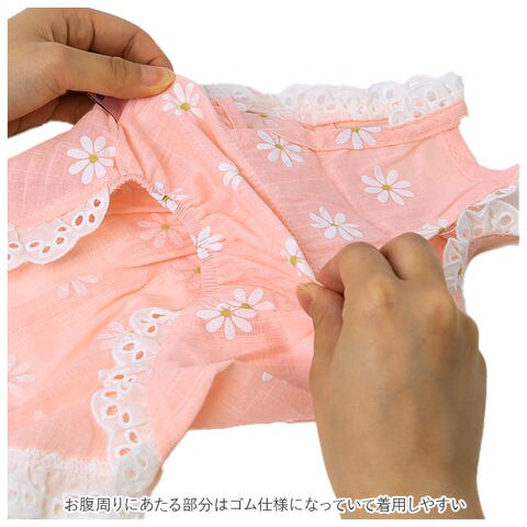 | 商品説明 | レース使いとリボンのデザインがかわいらしいペットウェア♪肩紐と裾にあしらわれたカットワークレースがとってもキュート。お腹周りにあたる部分はゴム仕様になっていて着用しやすい。花柄がプリントされた涼しげなコットン素材を使用。XS~2XLまでの幅広いサイズ展開。 |