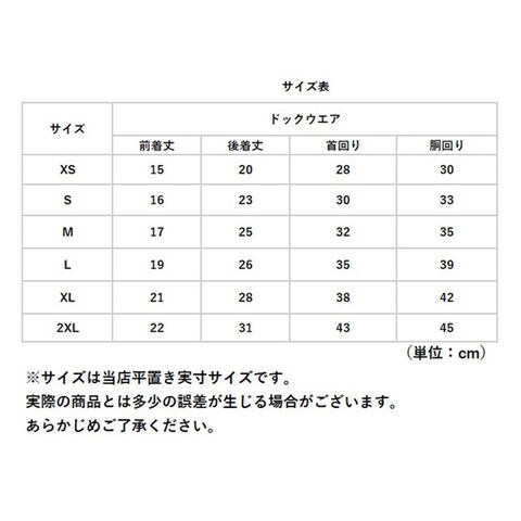 | サイズ | [ペットウェア] ・XSサイズ ・Sサイズ ・Mサイズ ・Lサイズ ・XLサイズ ・2XLサイズ ※サイズについて詳細は、サイズ表をご覧くださいませ。 |