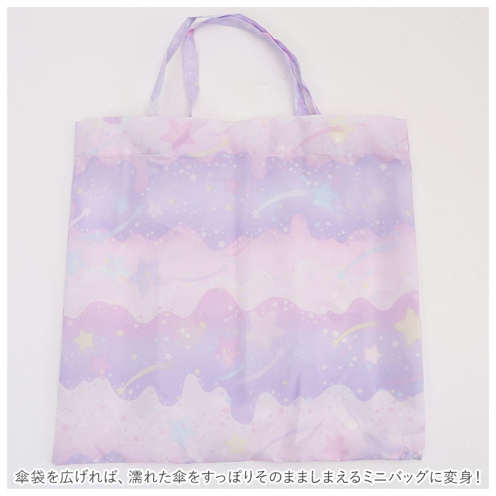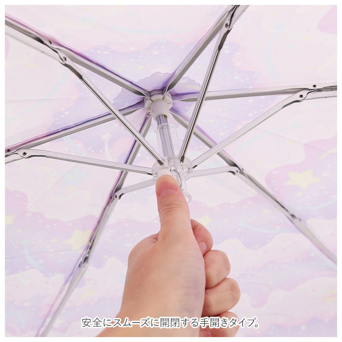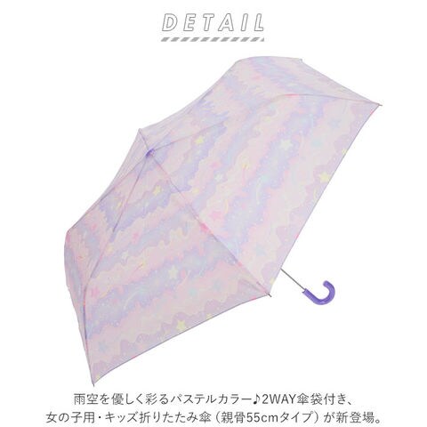 | 商品説明 | 雨空を優しく彩るパステルカラー♪2WAY傘袋付き、女の子用・キッズ折りたたみ傘(親骨55cmタイプ)が新登場。軽くて丈夫なアルミ親骨仕様。レッスンバッグにちょこんと入って持ち運びに便利な、軽量コンパクト設計。学校の昇降口など、混雑した場所でも安全にスムーズに開閉する手開きタイプ。お子さまの小さな指先や爪を傷つけない、安全ストッパー付きだからママもパパも安心!ランドセルのカラビナやバッグの持ち手に引っ掛けて持ちやすい、J字ハンドルを採用。傘生地をサッとまとめて手間取らない!面ファスナー式留めバンドの裏側には、お友達の傘との取り違えを防ぐネームタグ付き。(※面ファスナーは角を丸く加工し、指先を傷つけないよう配慮されています。)傘袋を広げれば、濡れた傘をすっぽりそのまましまえるミニバッグに変身!くるくると丸めてスナップボタンを留めるとコンパクトな傘袋に。流れ星やリボンにユニコーン・・・女の子の憧れを傘生地に散りばめたゆめかわデザイン。ふんわりパステルタッチで、雨の日も元気にお出掛け♪ |