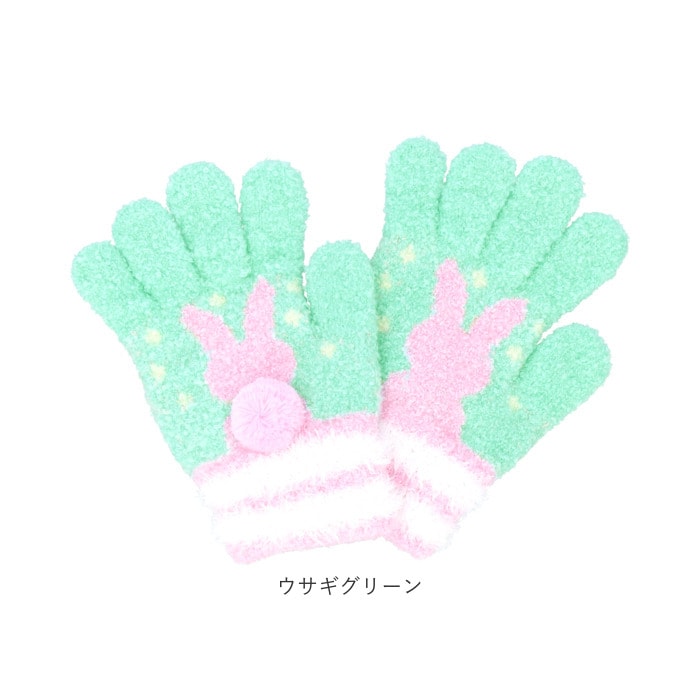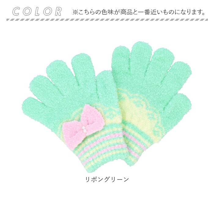 キッズ手袋 ワンポイント付き【リボングリーン】