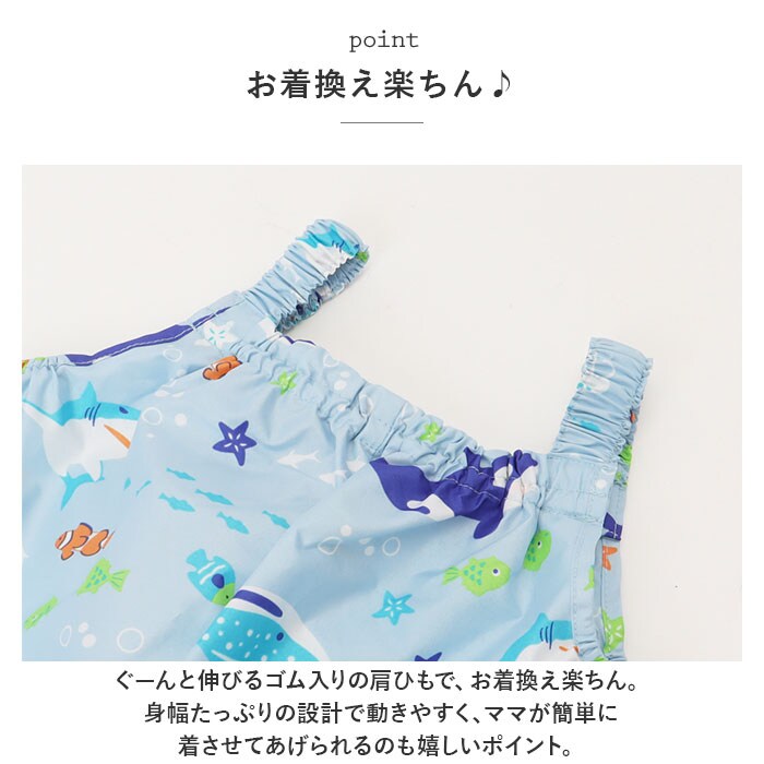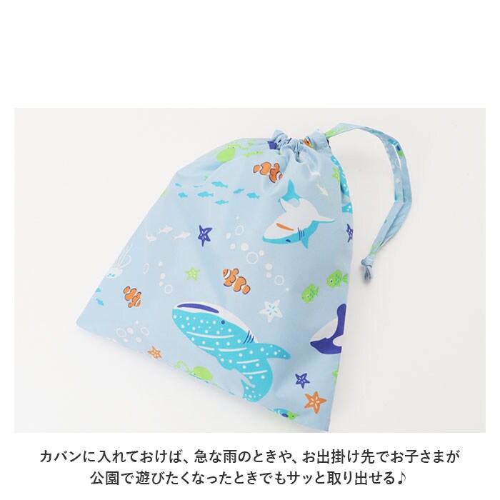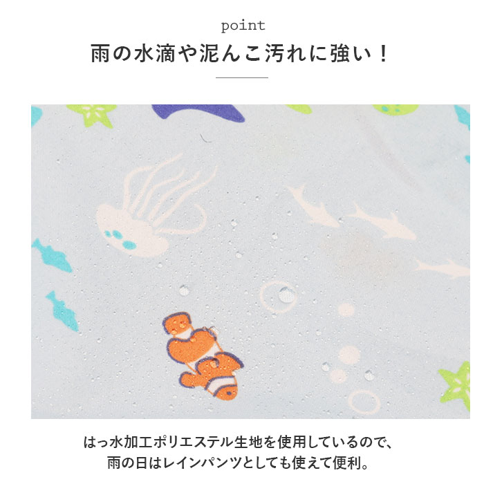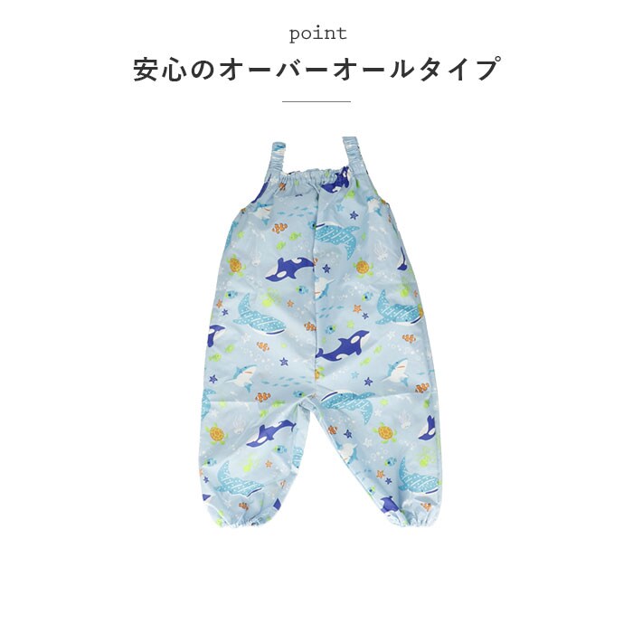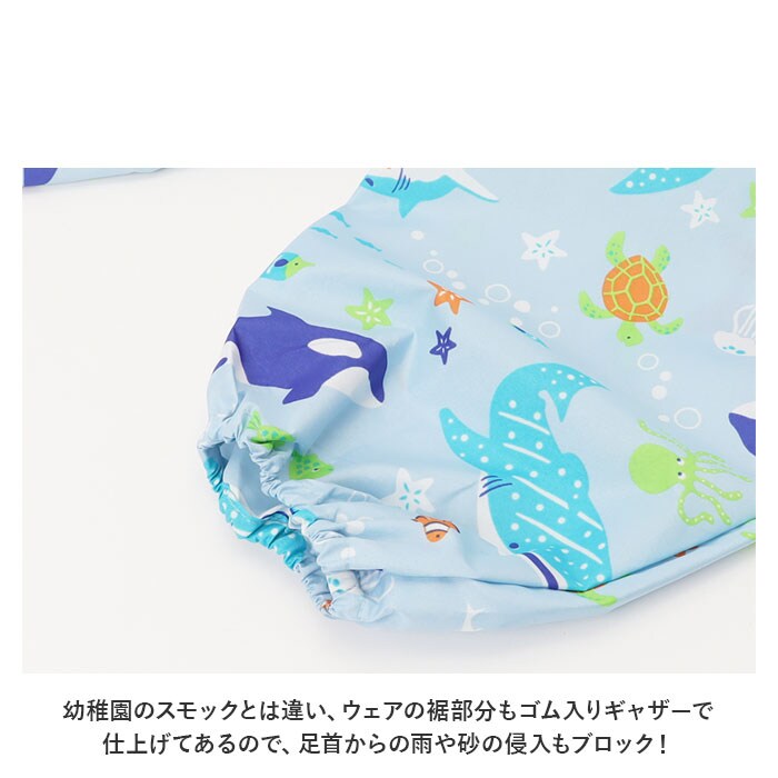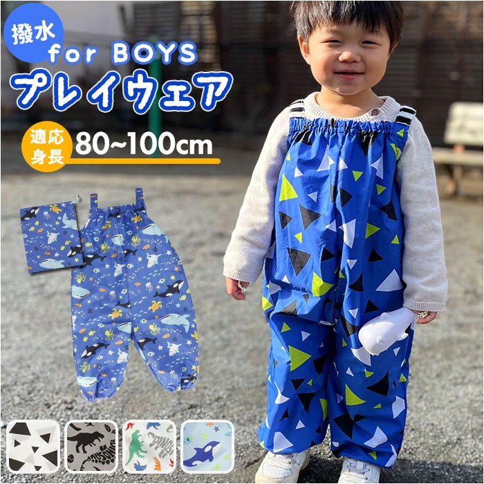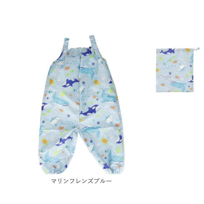 | 商品説明 | 雨の日のお出掛けやお砂場遊びに大活躍!男の子らしいCOOLなデザインが光る「ボーイズ用・キッズプレイウェア」が新登場。胸元までしっかりと覆ってお洋服が汚れにくい、安心のオーバーオールタイプ。ぐーんと伸びるゴム入りの肩ひもで、お着換え楽ちん。身幅たっぷりの設計で動きやすく、ママが簡単に着させてあげられるのも嬉しいポイント。幼稚園のスモックとは違い、ウェアの裾部分もゴム入りギャザーで仕上げてあるので、足首からの雨や砂の侵入もブロック!プレイウェアの生地と同じ柄の巾着袋付き!ママのカバンに入れておけば、急な雨のときや、お出掛け先でお子さまが公園で遊びたくなったときでもサッと取り出せる♪雨の水滴や泥んこ汚れに強い、はっ水加工ポリエステル生地を使用しているので、雨の日はレインパンツとしても使えて便利。同じシリーズのレインポンチョやレインブーツと合わせて、雨の日も素敵にコーディネート。(※レインポンチョ(yourponchob)とレインブーツ(yoursrainbootsb)は、別商品ページでお買い求めいただけます。ストアの検索窓に商品コードを入力してご覧ください。)ワイルドな恐竜や海のブルーが冴えるマリン柄など、男の子の夢をちりばめたPOPなデザインで、公園遊びがもっと楽しく♪ |