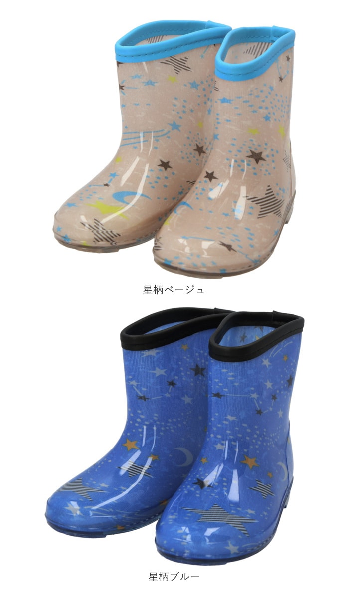 キッズレインシューズ 男の子【星柄ブルー】【15cm】