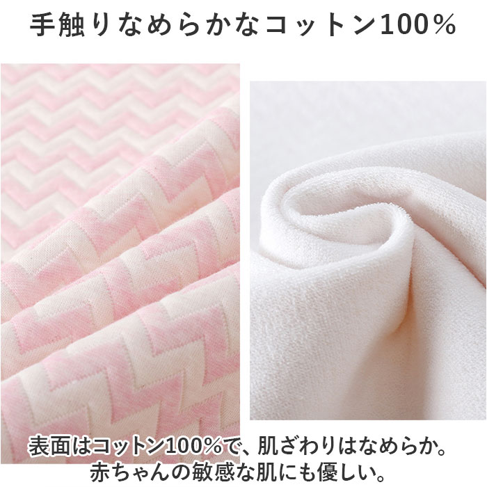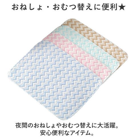 | 商品説明 | おむつ替えにもおねしょ対策にも♪大きめシーツが新登場!【おねしょ・おむつ替えに便利★】夜間のおねしょやおむつ替えに大活躍。安心便利なアイテム。【手触りなめらかなコットン100%】表面はコットン100%で、肌ざわりはなめらか。赤ちゃんの敏感な肌にも優しい。【吸水性抜群】吸水性が良いので下に漏れる心配はなし。安心して使用できる★【洗濯機で洗える】汚れたら洗濯機でじゃぶじゃぶ★簡単に洗えて、衛生的に保てるのが嬉しい。【水分をしっかり吸収】4層構造が水分をしっかり吸収。ベッドに漏れず、清潔に保てる♪【縁はパイピング加工】縁はパイピング加工されており、長く使っても型崩れしにくい♪ |