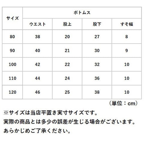 | サイズ | [ベビー] ・80cm ・90cm ・100cm ・110cm ・120cm ※サイズについて詳細は、商品画像の中にあるサイズ表をご覧くださいませ。 |
