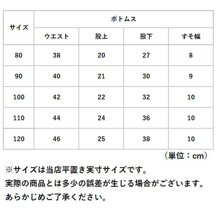 | サイズ | [ベビー] ・80cm ・90cm ・100cm ・110cm ・120cm ※サイズについて詳細は、商品画像の中にあるサイズ表をご覧くださいませ。 |