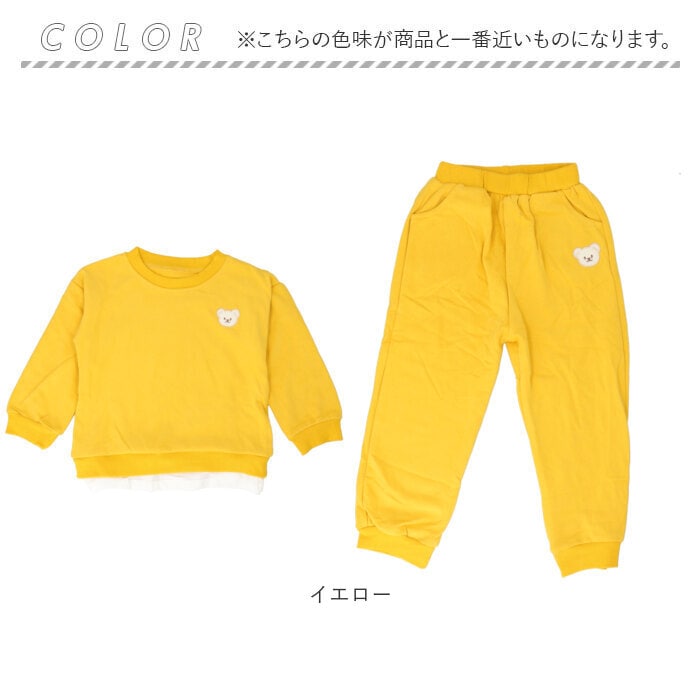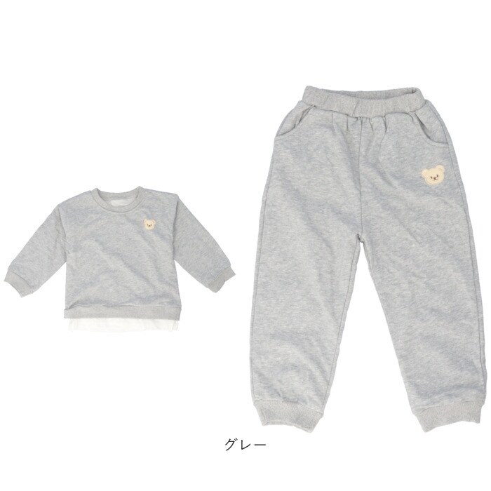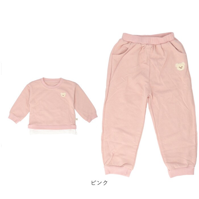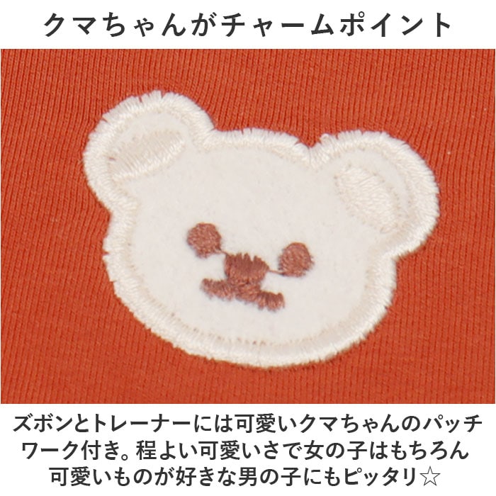 | 商品説明 | お家でも♪お出かけにも♪おしゃれに決まるキッズトレーナーセットアップが発売。【クマちゃんがチャームポイント】ズボンとトレーナーには可愛いクマちゃんのパッチワーク付き。程よい可愛いさで女の子はもちろん可愛いものが好きな男の子にもピッタリ☆【おしゃれなセットアップ】統一感があり、おしゃれに決まるセットアップ!それぞれ単品で使うのもOK!【ラフ過ぎないレイヤード風】トレーナーの下に裾をちょい足し!レイヤード風のデザインでラフすぎず、普段のお出かけにも。【素肌に優しい】チクチクしないコットン混紡生地を採用。素肌にあたっても優しい着心地。【ラクな穿き心地】お腹を苦しめない平ゴム仕様のウエスト。お子さま1人でのお着替えやおトイレもスムーズ!【通園・通学にも】ポケットやハンカチが入るサイドポケット付き。動きやすいから通園通学用として使うのもおススメ♪ |
