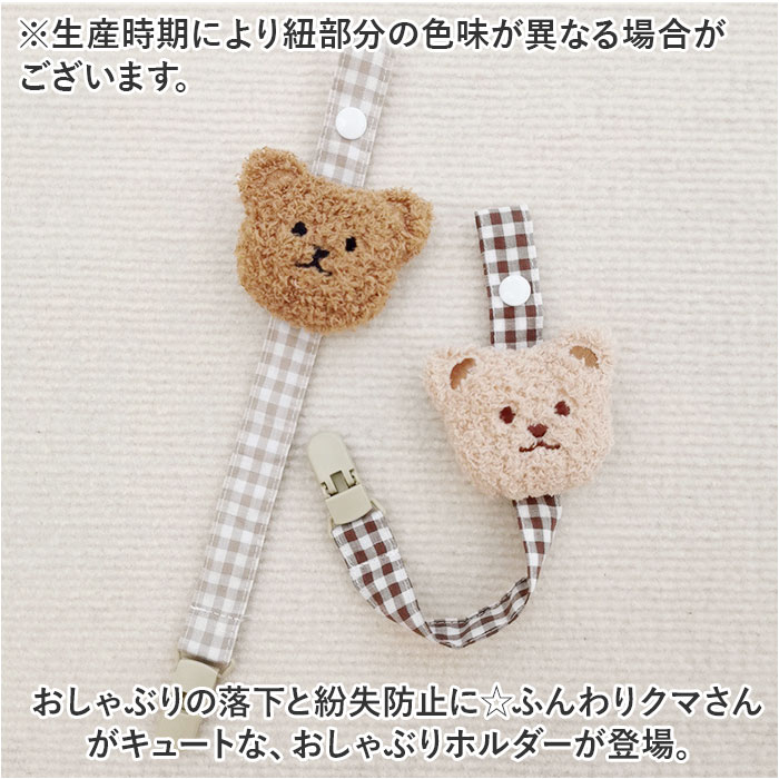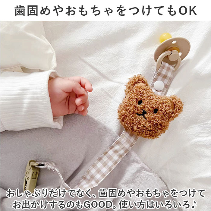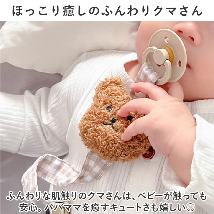 | 商品説明 | おしゃぶりの落下と紛失防止に☆ふんわりクマさんがキュートな、おしゃぶりホルダーが登場。【おしゃぶりの落下と紛失の防止に】おしゃぶりのどこ行った?!落としちゃった!!問題に役立つ、お出かけの必須アイテム。【ほっこり癒しのふんわりクマさん】ふんわりな肌触りのクマさんは、ベビーが触っても安心。パパママを癒すキュートさも嬉しい◎【しっかり固定するクリップ】パチっとしっかり固定してくれるクリップが便利!ベビーカーや抱っこ紐につけやすい。【歯固めやおもちゃをつけてもOK】おしゃぶりだけでなく、歯固めやおもちゃをつけてお出かけするのもGOOD。使い方はいろいろ♪【男の子も女の子も使える☆】ナチュラルカラー仕立てなので、男の子も女の子も使える!出産祝いなどのギフトにもぴったり。 |