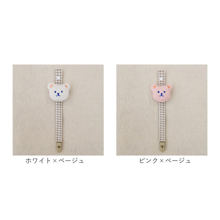ベビー おしゃぶりホルダー ストラップ クリップ ysbaby5536【ホワイト×ベージュ】