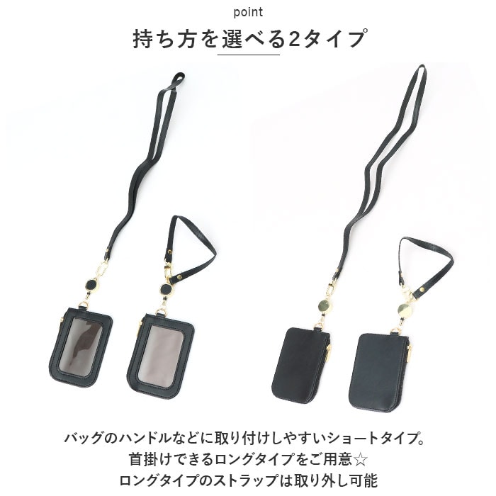 | 商品説明 | 通勤・通学の必需品!どなたでも持ち歩きやすく使い勝手の良い、リール付きパスケースが新登場。【スリム&軽量設計】薄くて軽いので携帯しやすい!使わない時は、バッグにもサッと忍ばせておけるパスケース。【スマートにタッチ&ゴー♪】ぐ~んと伸びるリール付き。改札でも手間取らずスムーズにタッチOK♪【社員証やICカードをIN】ポケットは中身が見えるクリア窓仕様で、社員証やICカード、定期券を入れるのに最適。カードが飛び出す心配不要なファスナー式。【持ち方を選べる2タイプ】バッグのハンドルなどに取り付けしやすいショートタイプ。首掛けできるロングタイプをご用意☆ロングタイプのストラップは取り外し可能。【うれしいユニセックス仕様】落ち着きのあるマットな質感に仕上げ、年代・性別問わず選びやすいカラーを、豊富にラインナップ。お好みでチョイスして! |